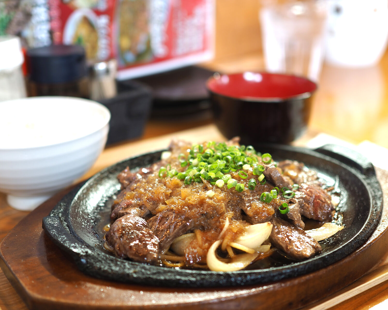 辛麺以外に定食メニューも用意されていまして、ご一緒いただいた友人は「牛サガリ鉄板定食」をチョイス