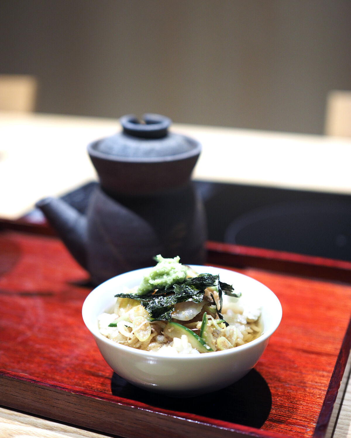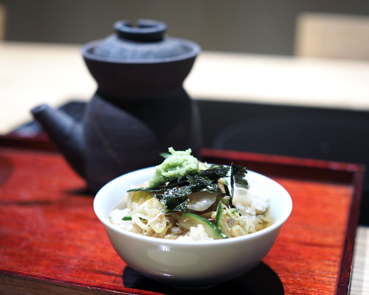 出汁の旨みが効いていることでのおいしさは正に絶品 お茶漬けにするために作られたかのような丼を海苔の風味や、わさびの香りとともにいただき大満足であります