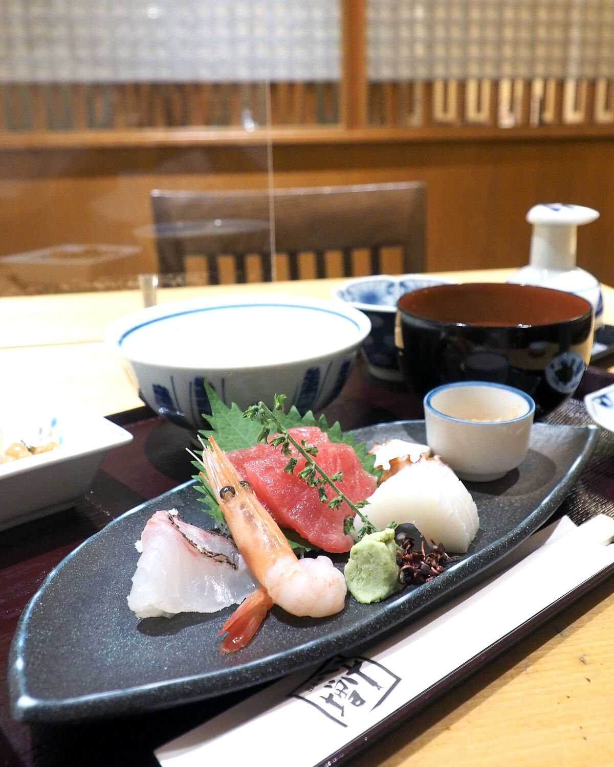 焼き魚やから揚げなど数種のお料理が少しずついただけると言う「重ね弁当」に惹かれながらも、今日の焼き魚が鮭の塩焼きと面白みに欠けることから「刺身定食」をいただくことにしたのであります