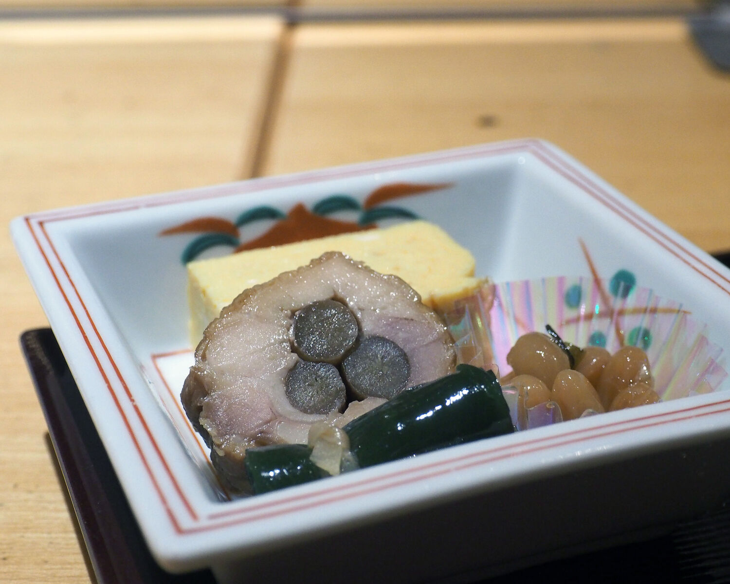 そして煮物 八幡巻きをメインに昆布巻と大豆の煮ものが添えられているのですが、これがしっかりと味が染みたものでありますし、その味付けも上品で…