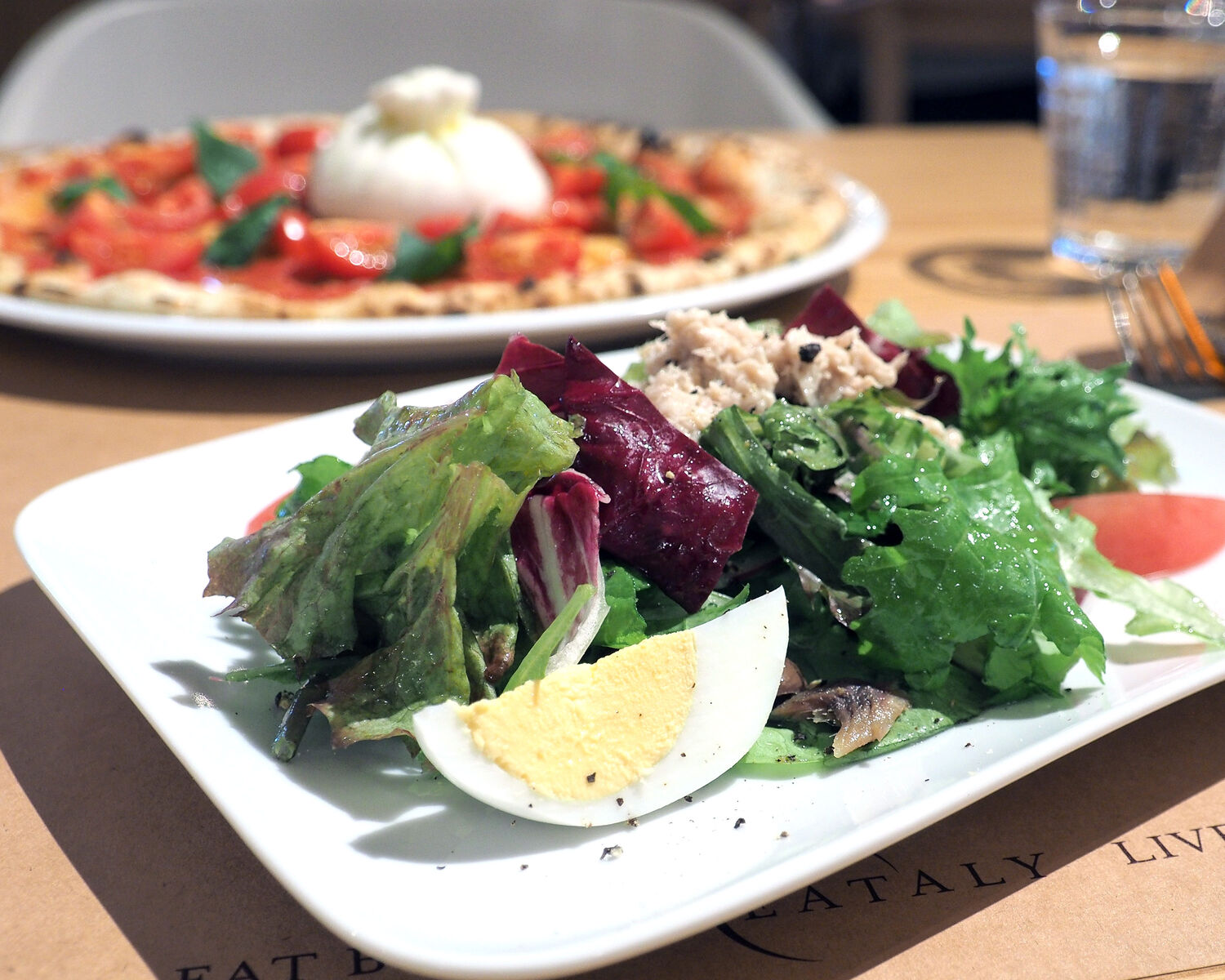 それほどゆっくりとすることもできないことから、軽くいただくことにしようとピッツェリア“LA PASTA e LA PIZZA”がイチオシするピッツァ「ブッラータ」にサラダメニューから選んだ「ニース風サラダ」を添えていただくことにいたします