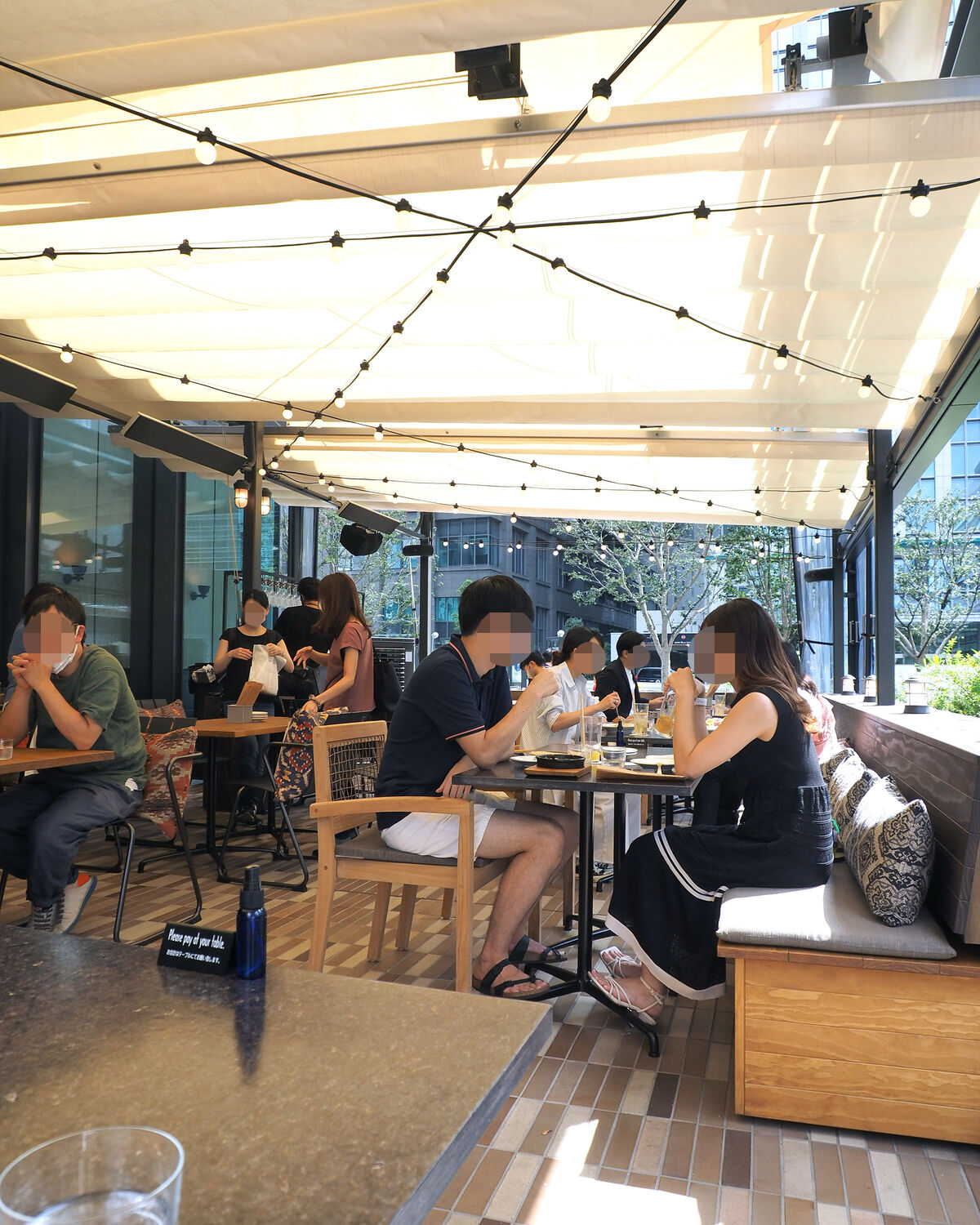地上階にある飲食店のすべてに"TOKYO TORCH Park"を望むテラス席が設けられているとのことで、折角ならばと緑を眺めながらの食事を楽しませていただくことにいたします