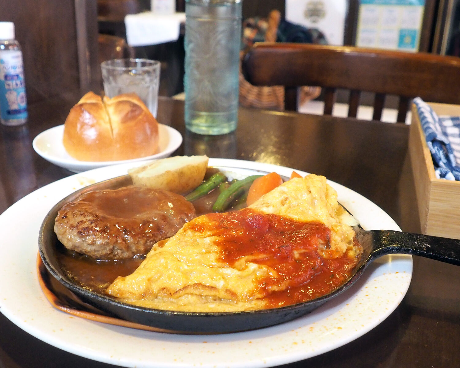入口には“ハンバーグとオムレツの店”と書かれた看板が掲げられているように、こちらの一番人気は「ハンバーグとチーズオムレツ」であるとのことで…
