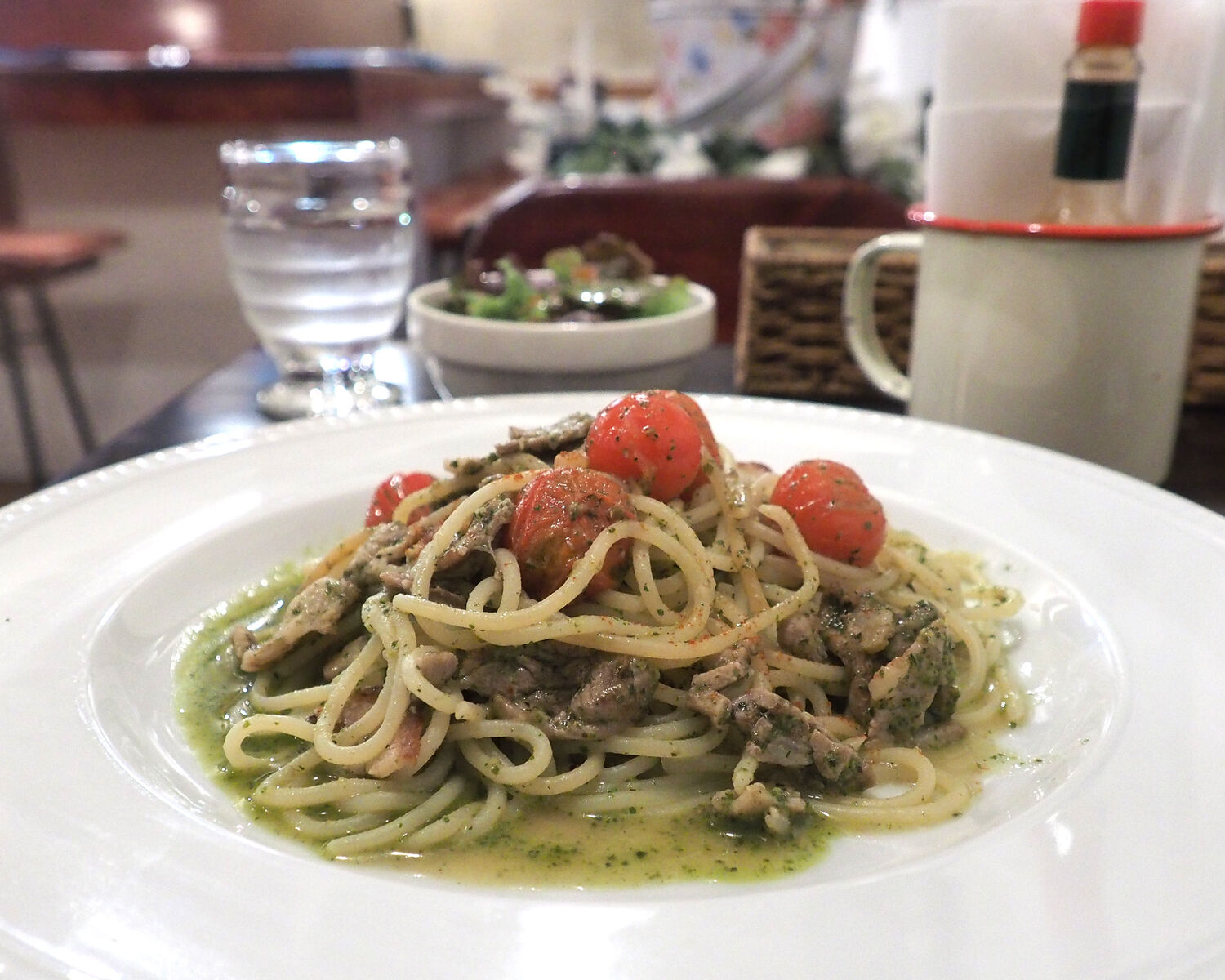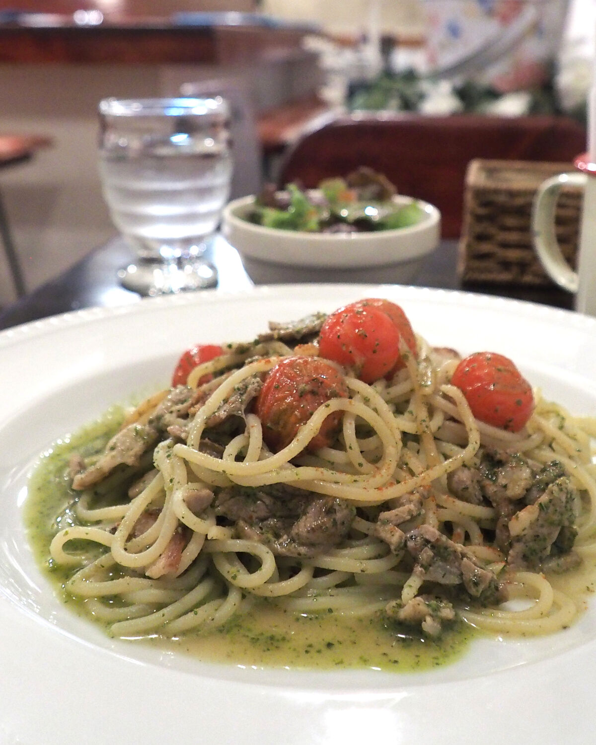 生麺と言えばクリーム系のソースでいただきたいところではありますが、こだわりのイタリア産セモラ粉をイタリア炭酸水で捏ねたと言うイタリア生麺をいただいてみたいとバジルソースをいただくことにいたします