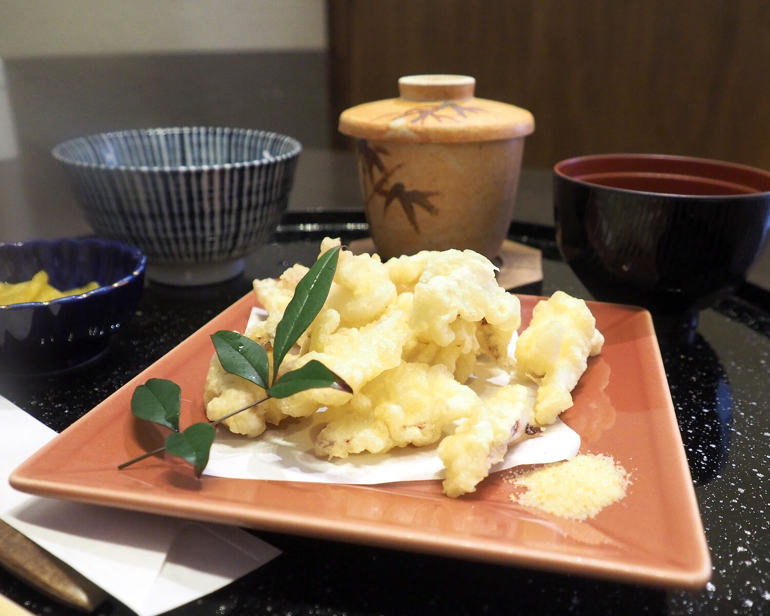 夜だと七輪焼きでいただくこともできるようですが、お昼は天ぷらだけであるとのことで…