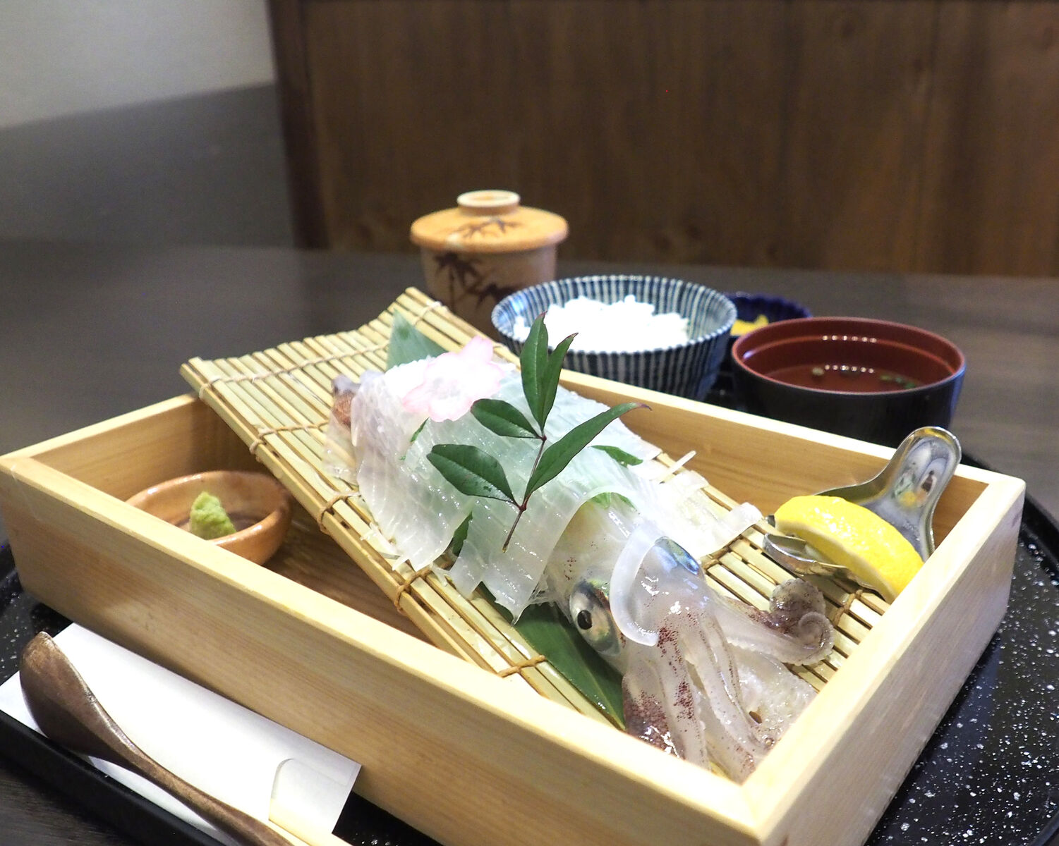 福岡には活イカを提供してくださるお店がたくさんあるのですが、ひとりランチでそれをいただけるところは稀でありまして…