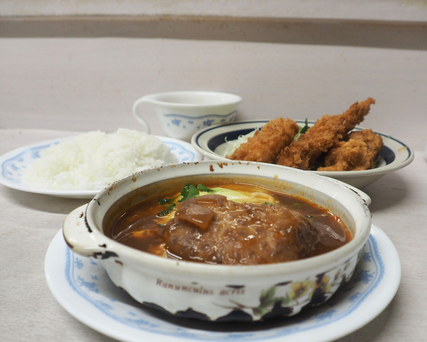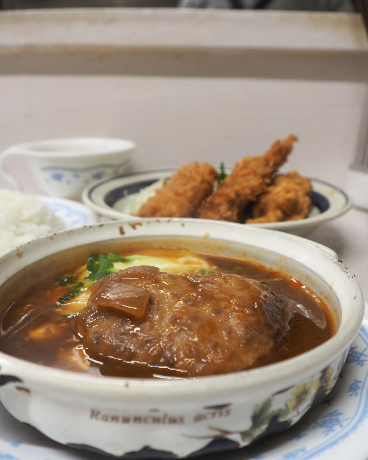 ハンバーグは事前に焼き上げていたものをキャセロールでデミグラス系のソースで煮込まれたものでありまして…