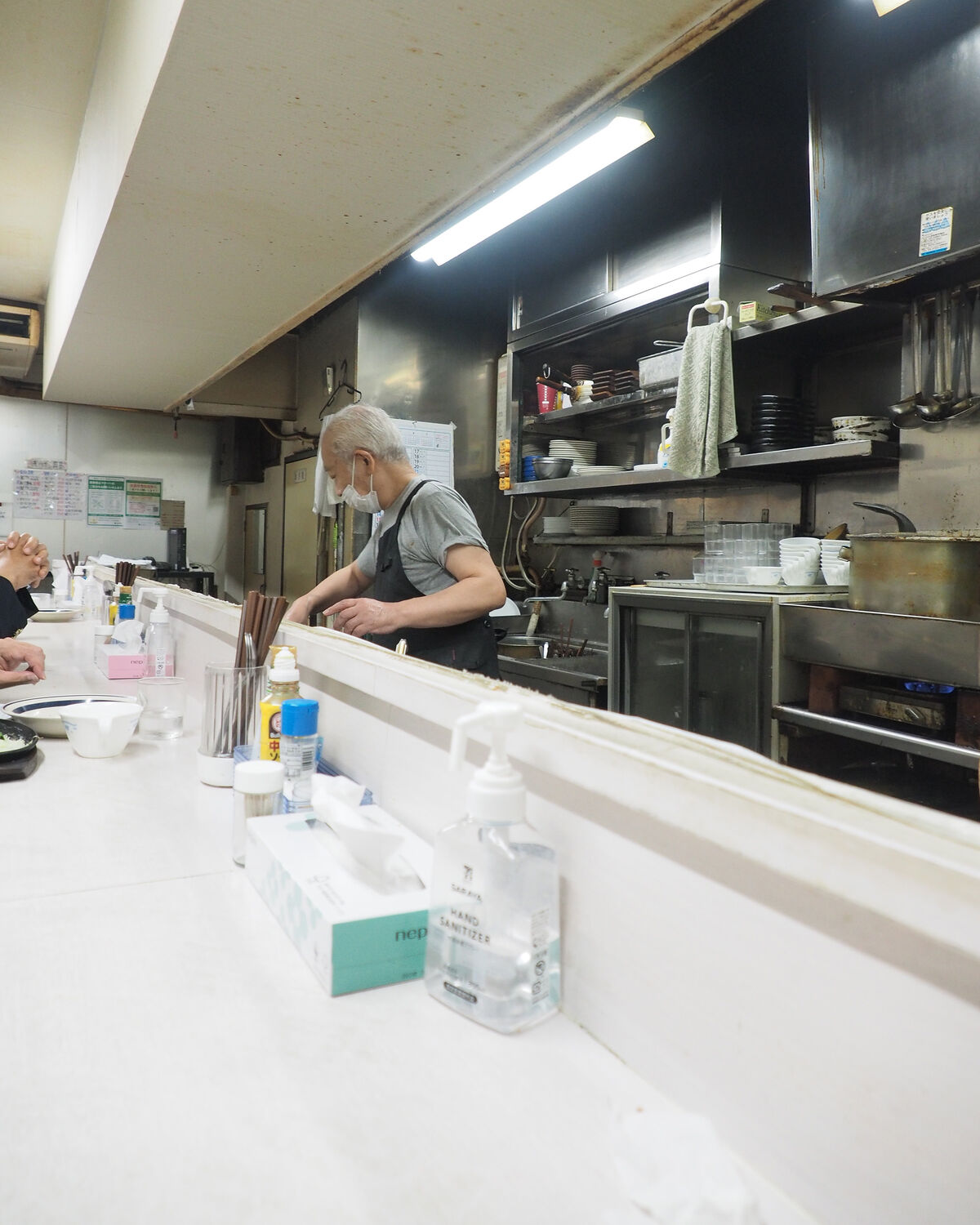 色気がない殺風景なお店ではありますが、カウンターが白色であることから明るさと清潔感を感じることができますし、きれいに手入れされていますので老朽化ではなくレトロ感に溢れています