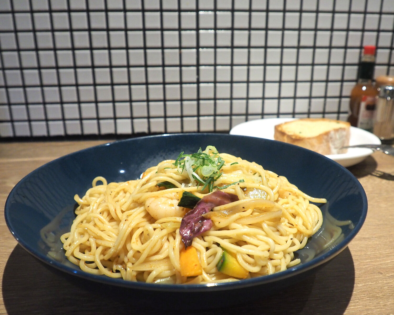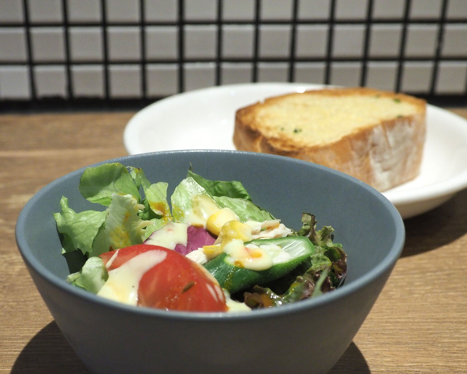 サイドメニューから選んだのは本日のサラダとガーリックトーストでありまして、盛り置きされていたであろうサラダにはみずみずしさを感じることができませんでしたが、厚切りにされたガーリックトーストはサクッとした歯ざわりに焼かれているだけでなく、ガーリックとバター、オリーブオイルのバランスが良く香りも旨みも楽しむことができました