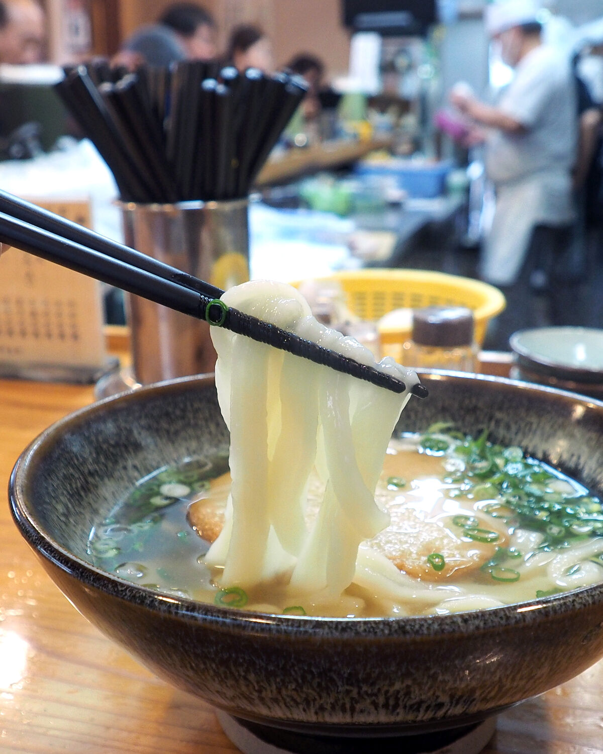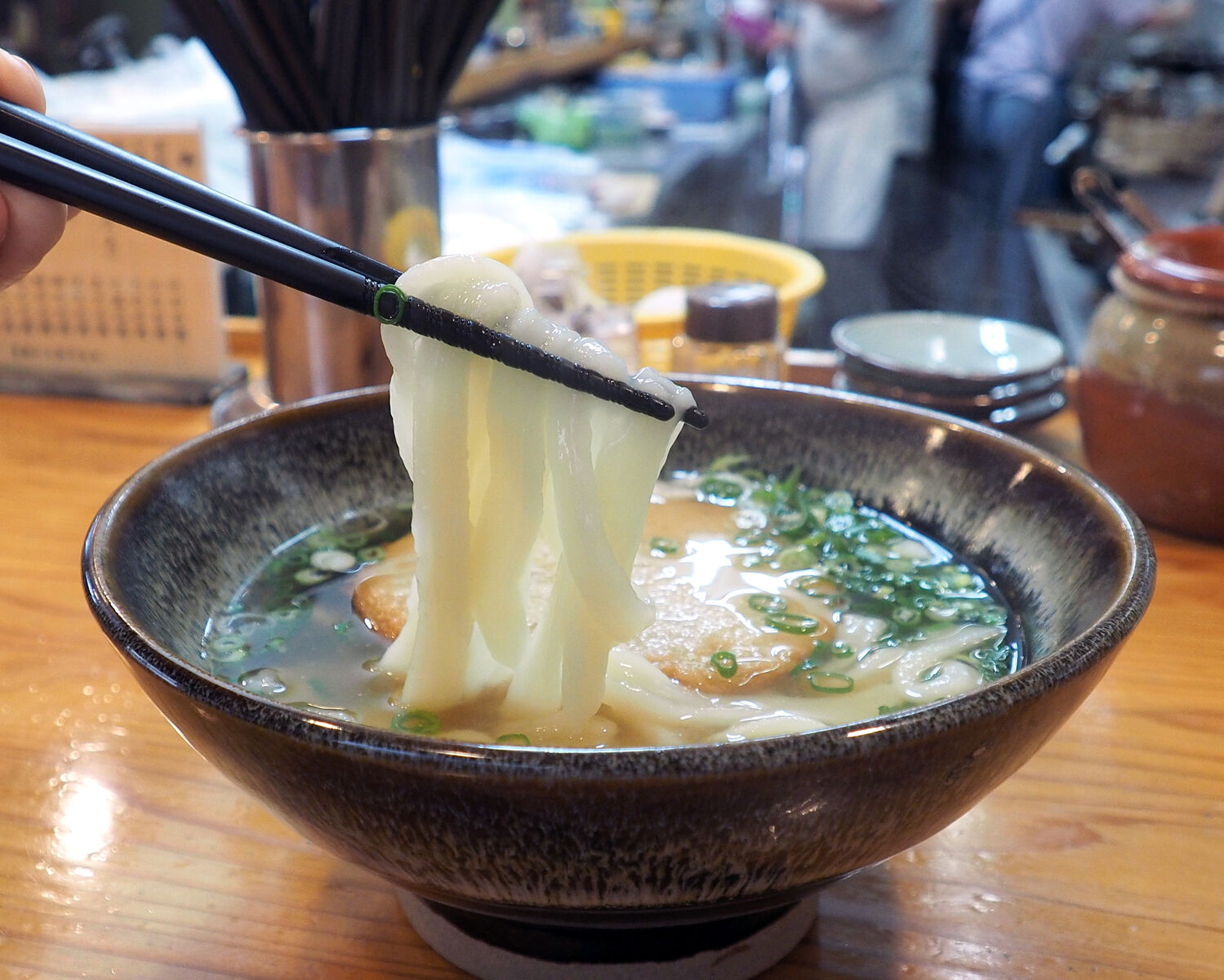 うどんは平打ちで…