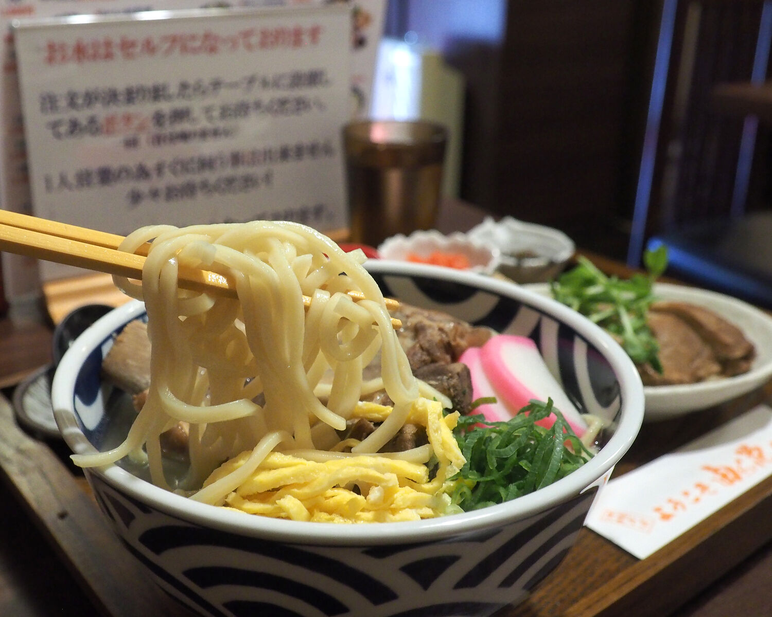 かつおの風味豊かな出汁の優しい味わいと、ツルツルと啜ると言うよりもモグモグと食べる印象が強いそばの食感と沖縄らしさを満喫いたしました