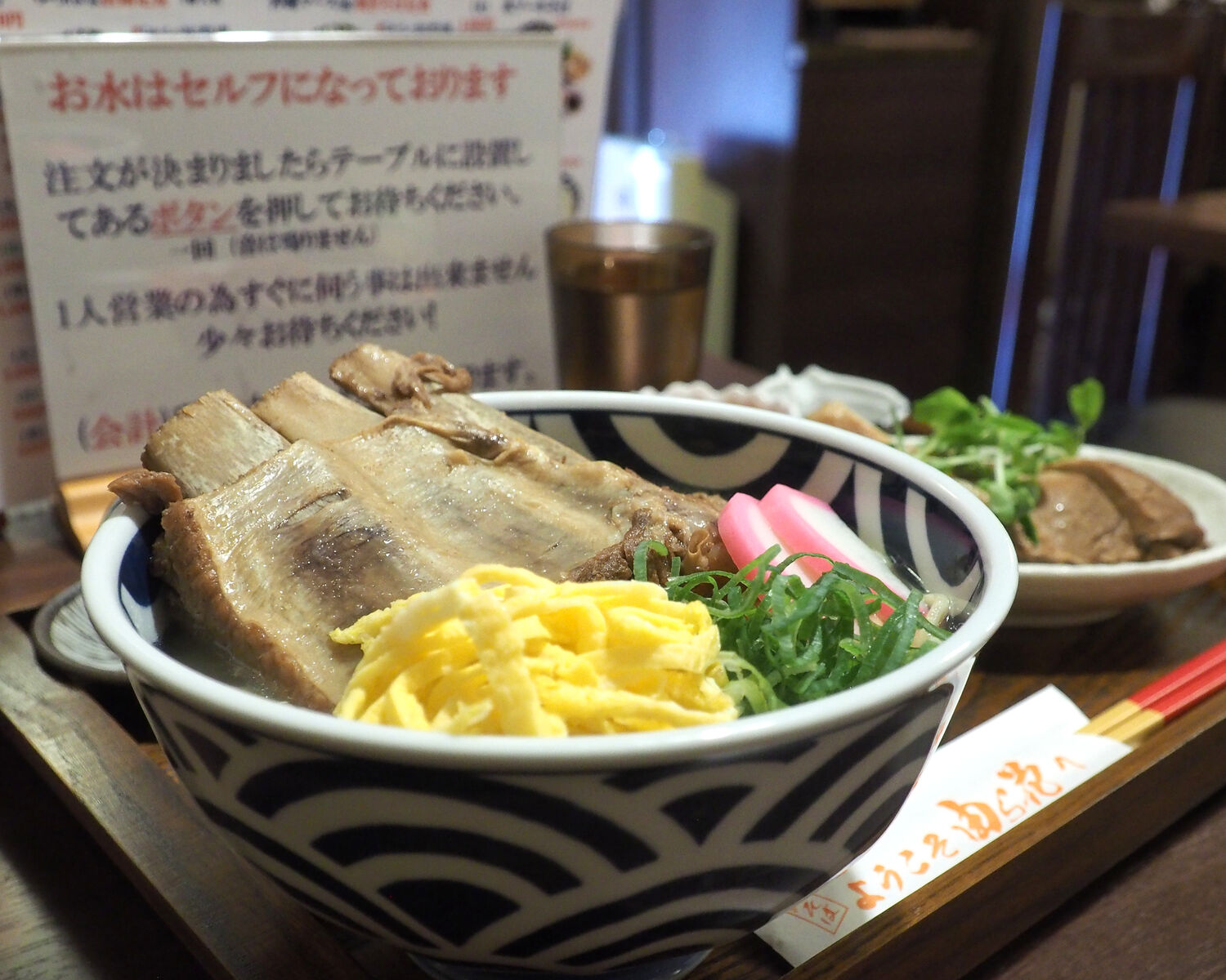 骨付きバラ肉が乗せられる「本ソーキそば」をいただくことにいたします