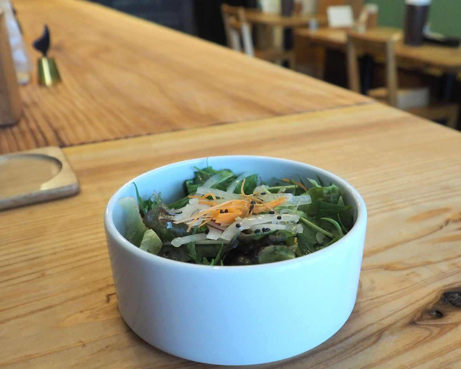 添えられるサラダは盛り置きされたものではありますが、ベビーリーフがたっぷりと盛られていますし酸味が効いたドレッシングは香りもおいしく…