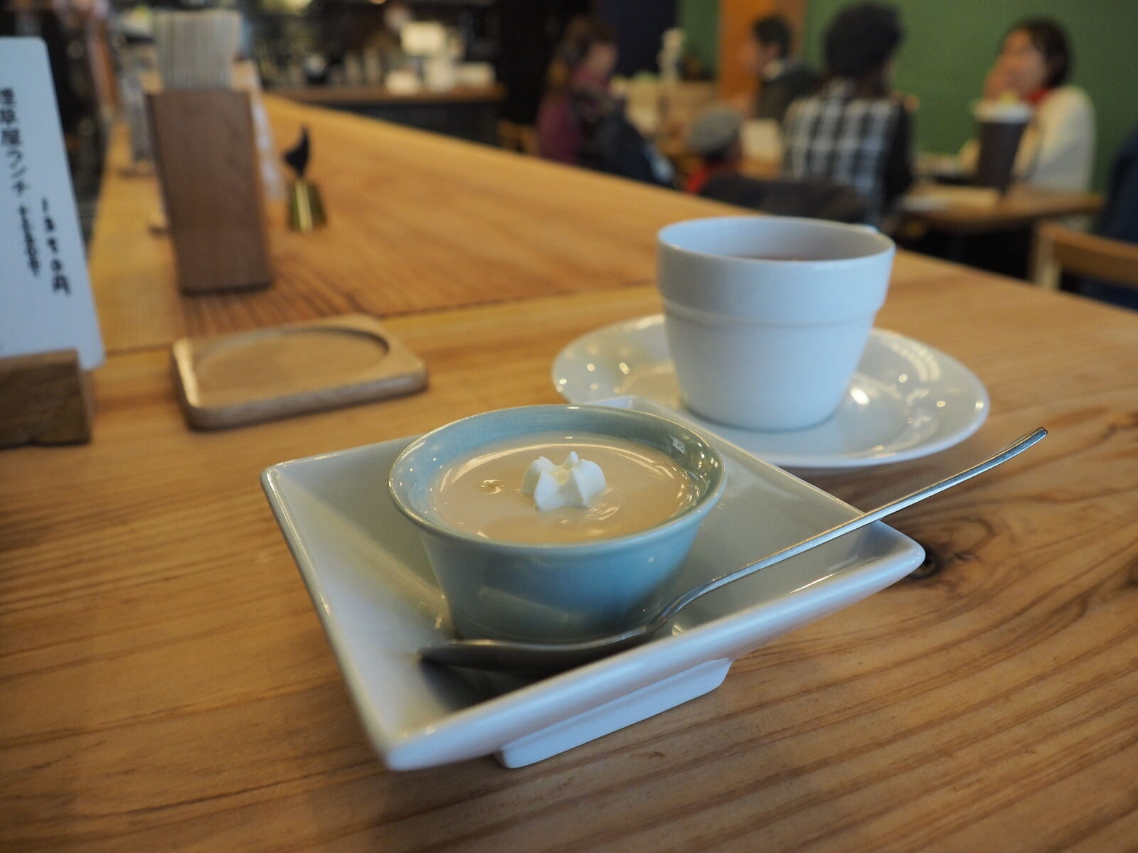 用意された4種のドリンクから選んだルイボスティーとともにいただく本日のデザートは「ほうじ茶のパンナコッタ」でありまして…