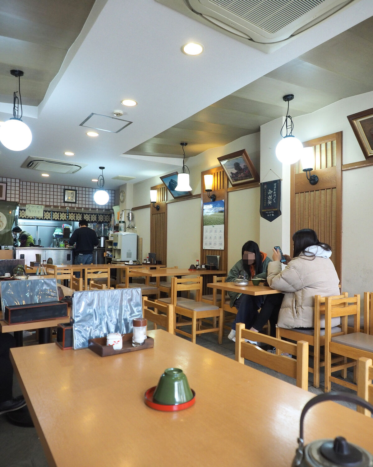風で寄れた暖簾を潜りますと、シンプルですっきりとした40席ほどの客席が奥へと伸びていますし、綺麗に掃除されていることはもとより、卓上に置かれた箸箱や調味料が整えられていることにも好感が持てます