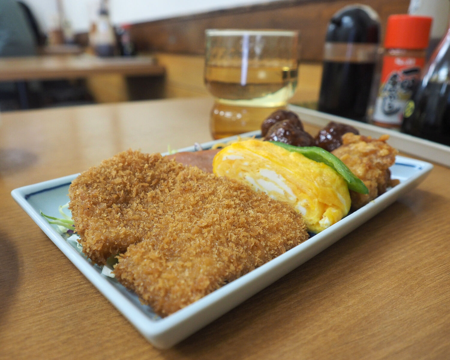 薄切りではありますが細かいパン粉をまとったとんかつのサクッとした歯ざわりや、ふっくらとしたミートボール、カラッと揚げられた唐揚げなどなどどれもおいしくいただけるものでありました