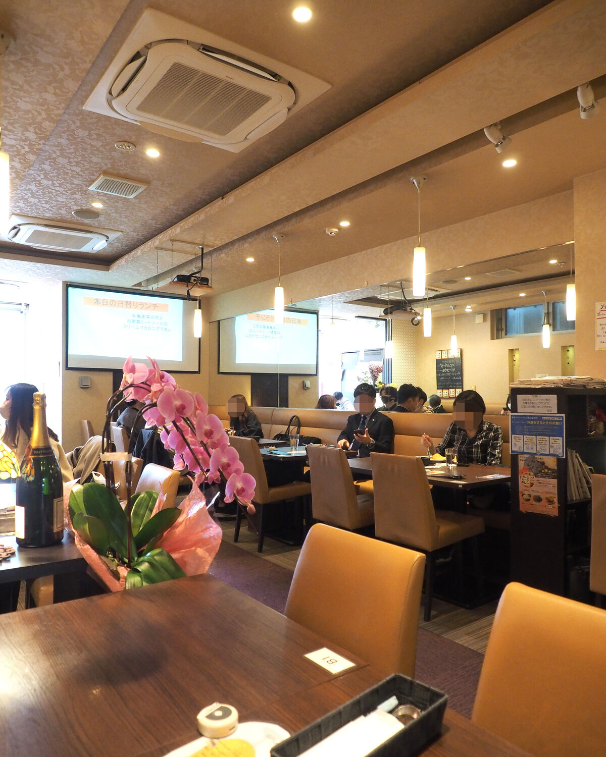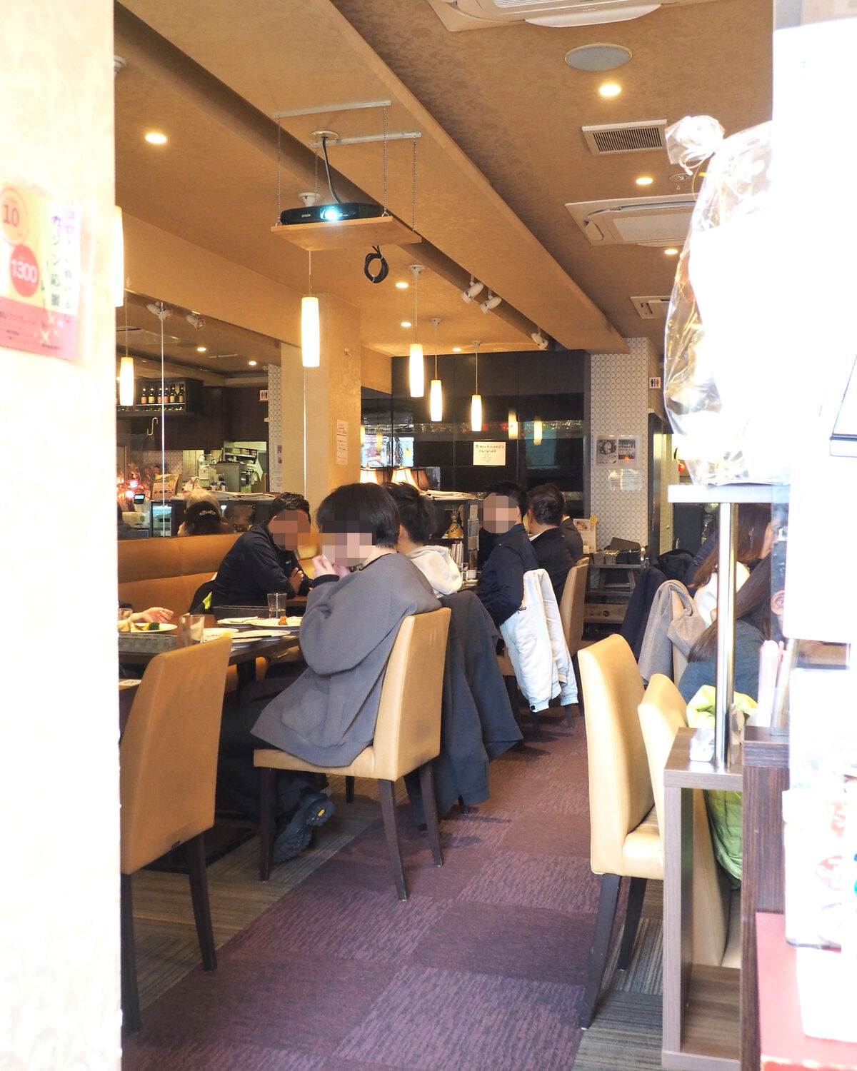 2名掛けのテーブルが左右に10卓ほどずつ並べられていますが、こんなご時勢であることことを踏まえてテーブル二つを合わせた4人が掛けられる席にもひとり客やふたり客も案内されているようですね