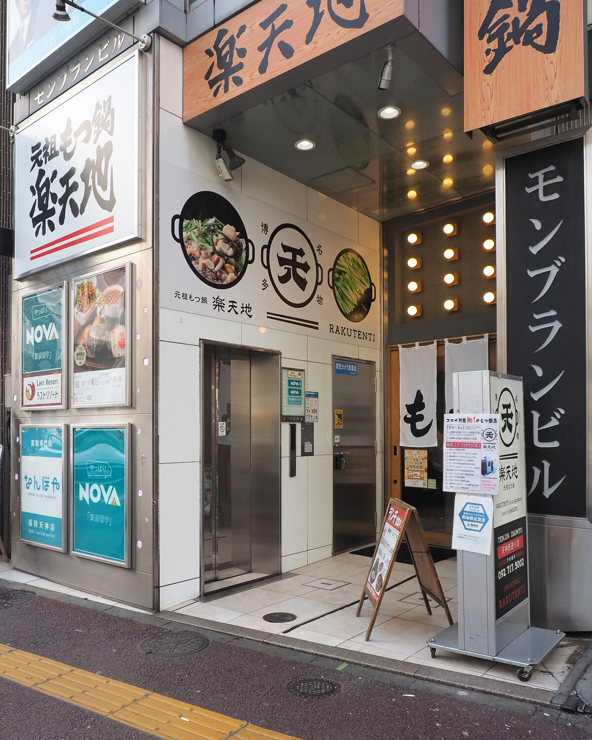 路面に大きな看板を出されることもなく、ほとんどもつ鍋屋さんの入口にしか見えないエレベーターで上がりますと…