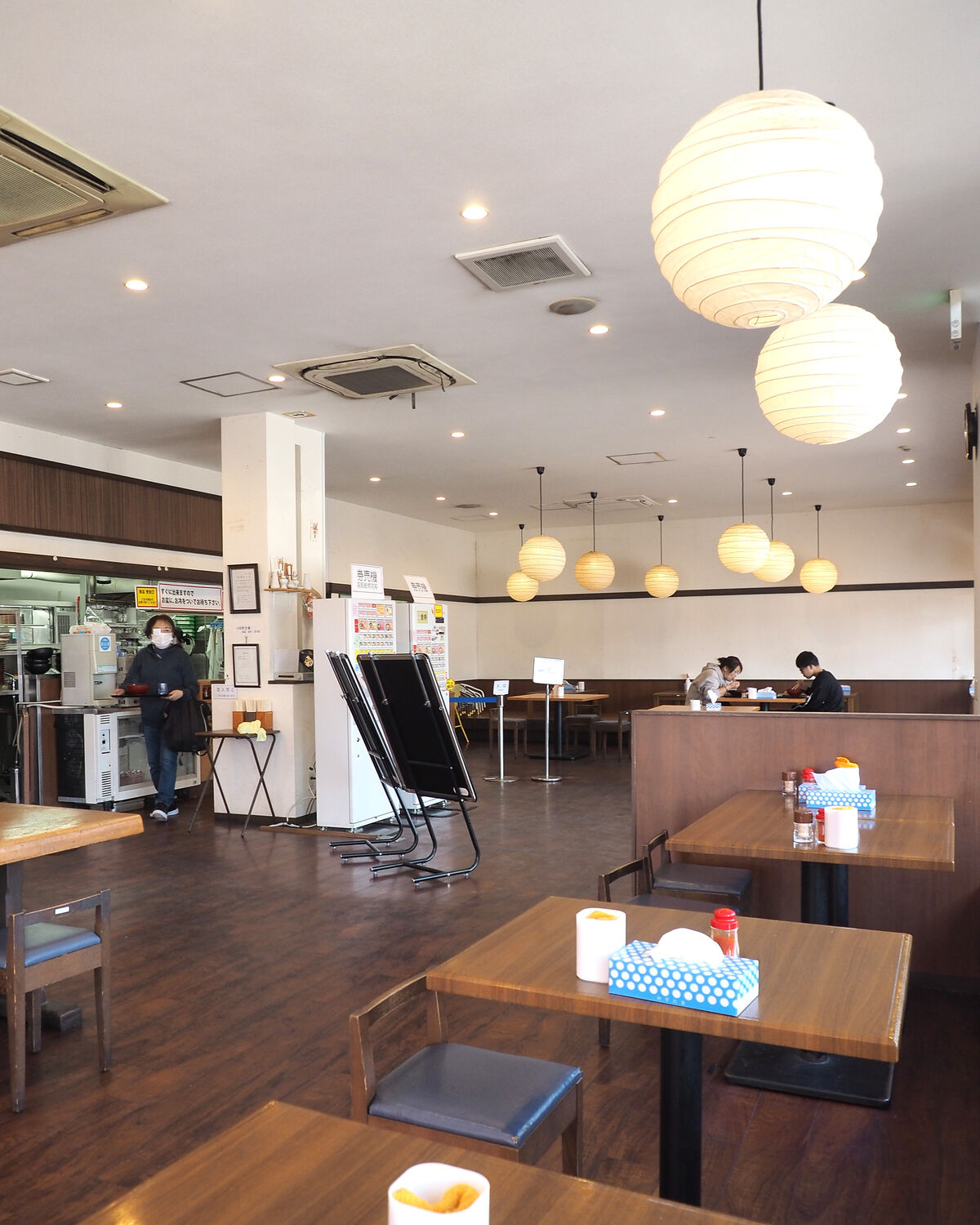 100席ほどあろうかと思えるお店はセルフサービスとなっていまして、券売機で買ったチケットをカウンターのスタッフさんに渡し、その場で出来上がったおうどんを持って客席へと運ぶのですが…