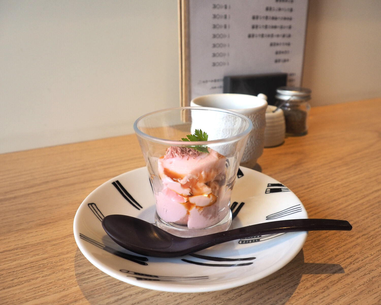 そのツルンとした舌ざわりとプルプルな食感が快くいただけますし、塩漬けされた桜の花に塩味がアクセントとなっておいしくいただけました