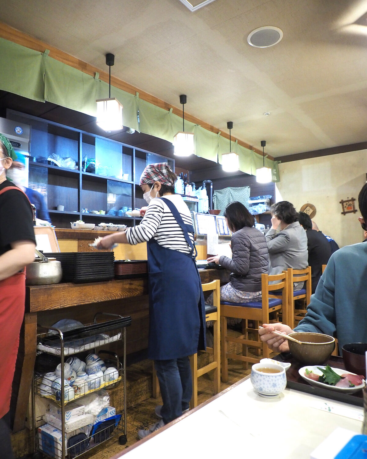 お昼のメニューには、サービスセット定食とある「Aねぎとろ丼」「B 松風弁当」「C 刺身盛合わせ」に加え、その他のセット定食として「ぶりかま塩焼のセット」「さわらの西京焼のセット」「さばみりん干焼セット」などと10品が並びますし…