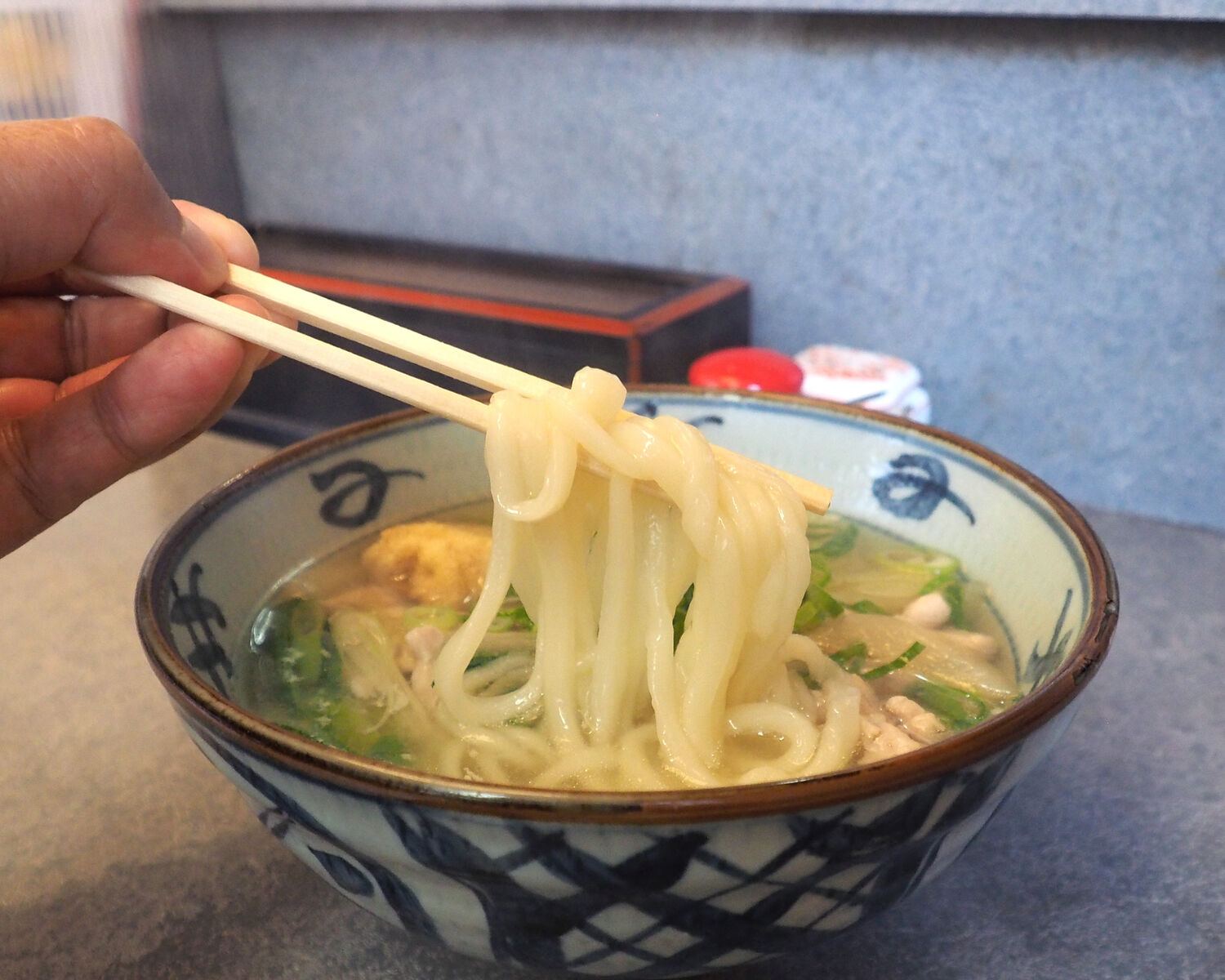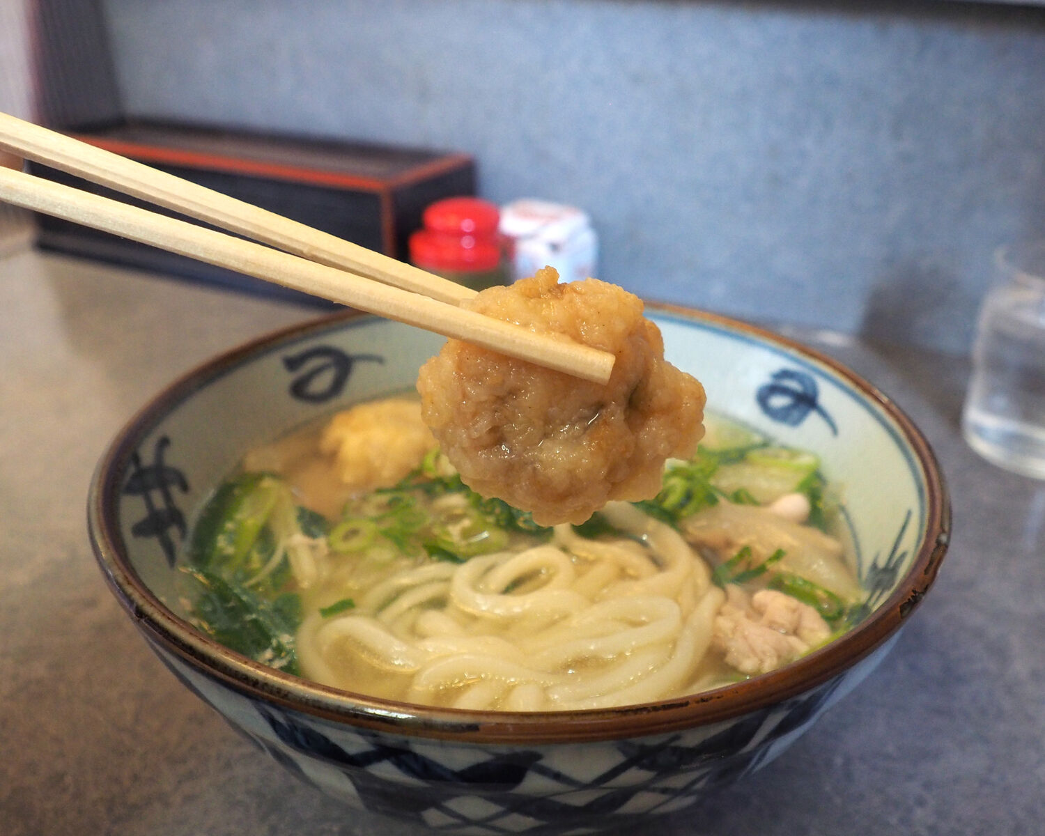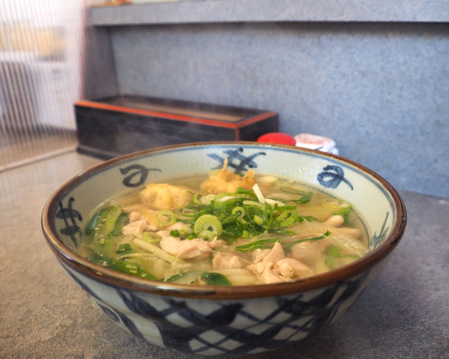博多うどんらしい“いりこ”の風味はさほど感じられませんでしたが細めの麺との相性が良く、思い描いたかしわうどんとは異なりましたがおいしくいただくことができました