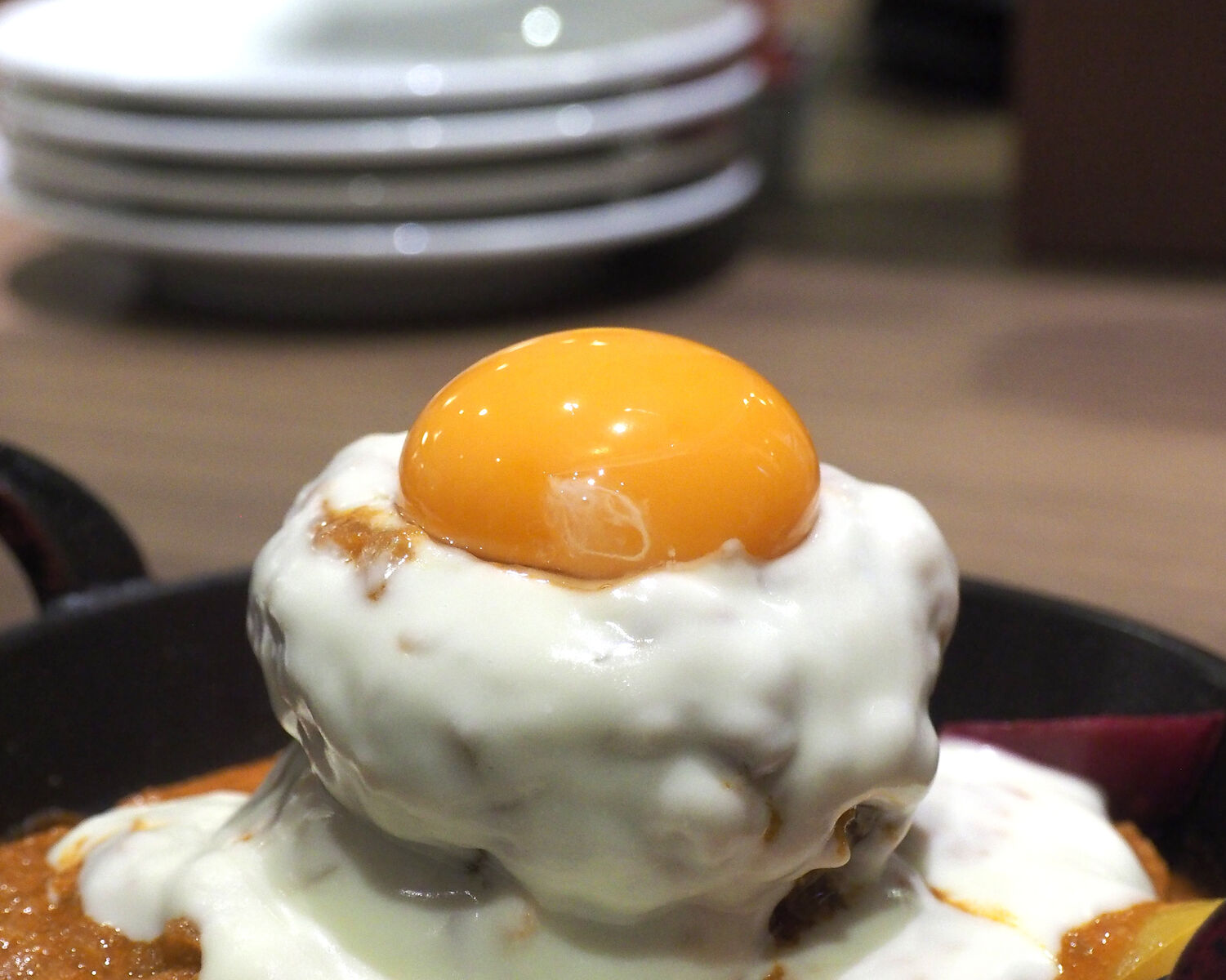 崩した卵黄と混ざることで円やかさを感じることもできますが、たっぷりと掛けられたカレーソースはスパイシーで…