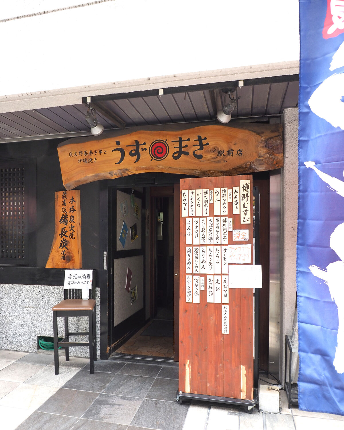 入口に大きなおにぎりのメニューが立て掛けられていますが、そこに『海鮮とおむすび』との文字がありませんので、『博多うずまき』がお昼営業を始められたように思う方も多いでしょうね