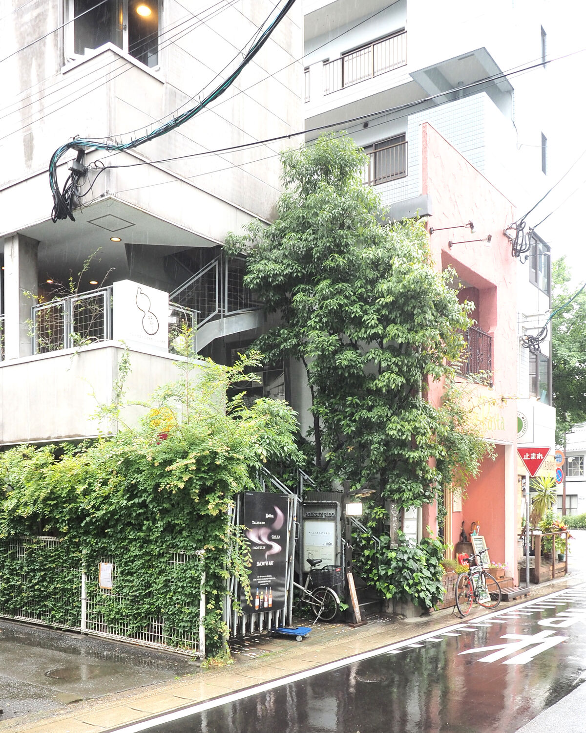 大きな立木が目印になった建物の2階にあるお店は、テーブル3卓10席とカウンター5席とこぢんまりとしていまして…