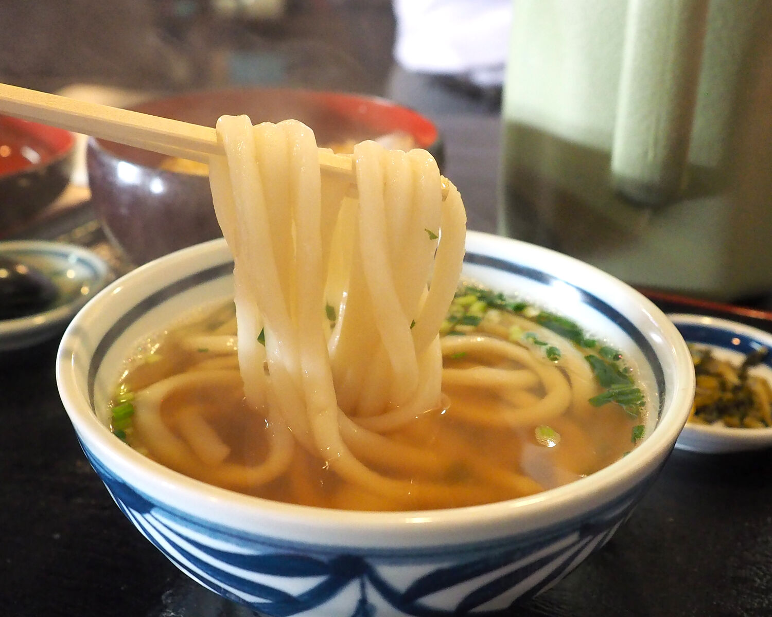 猛暑日となったことから冷たく〆られたお蕎麦に惹かれながらも選んだおうどんは博多うどんらしく柔らかい歯ざわりでありますし、おつゆは宗田鰹の節でとられたであろう芳醇な香りと旨みがおいしく…