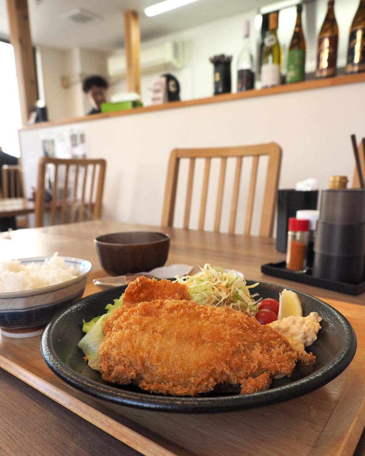 入り口に置かれた黒板メニューに“うわさのアジフライ”と書かれていたことに惹かれて「アジフライ」