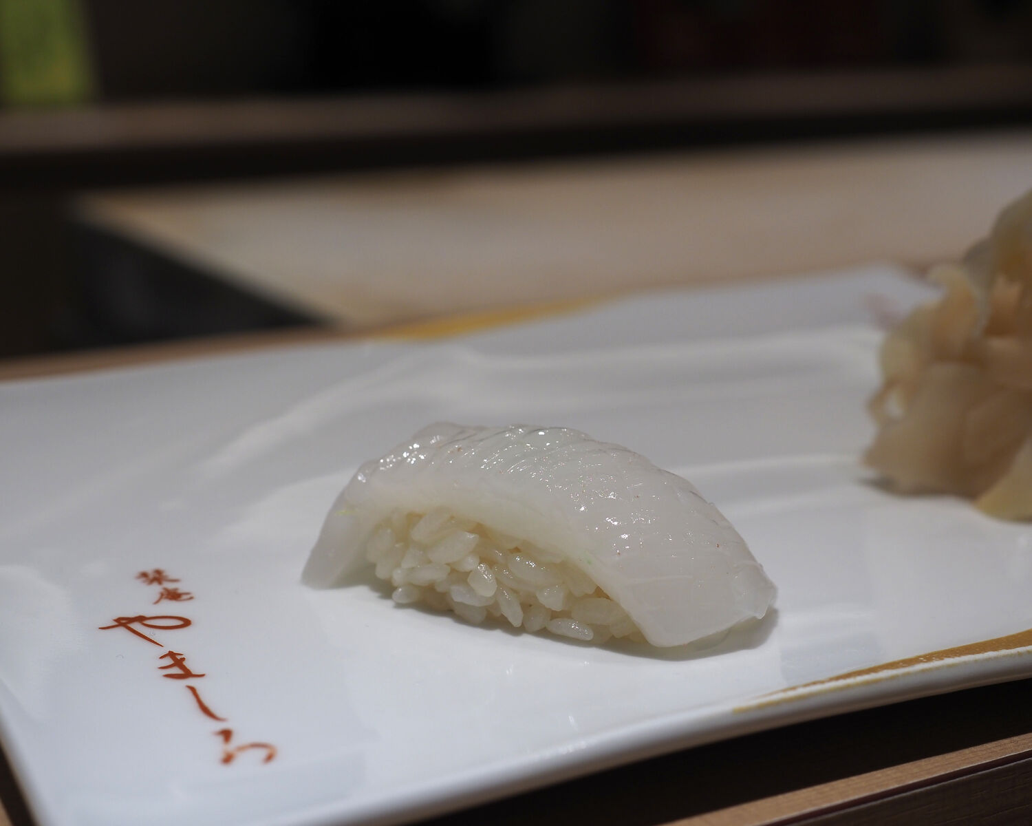 にぎりは天然の真鯛に始まり、ヤリイカと続きます