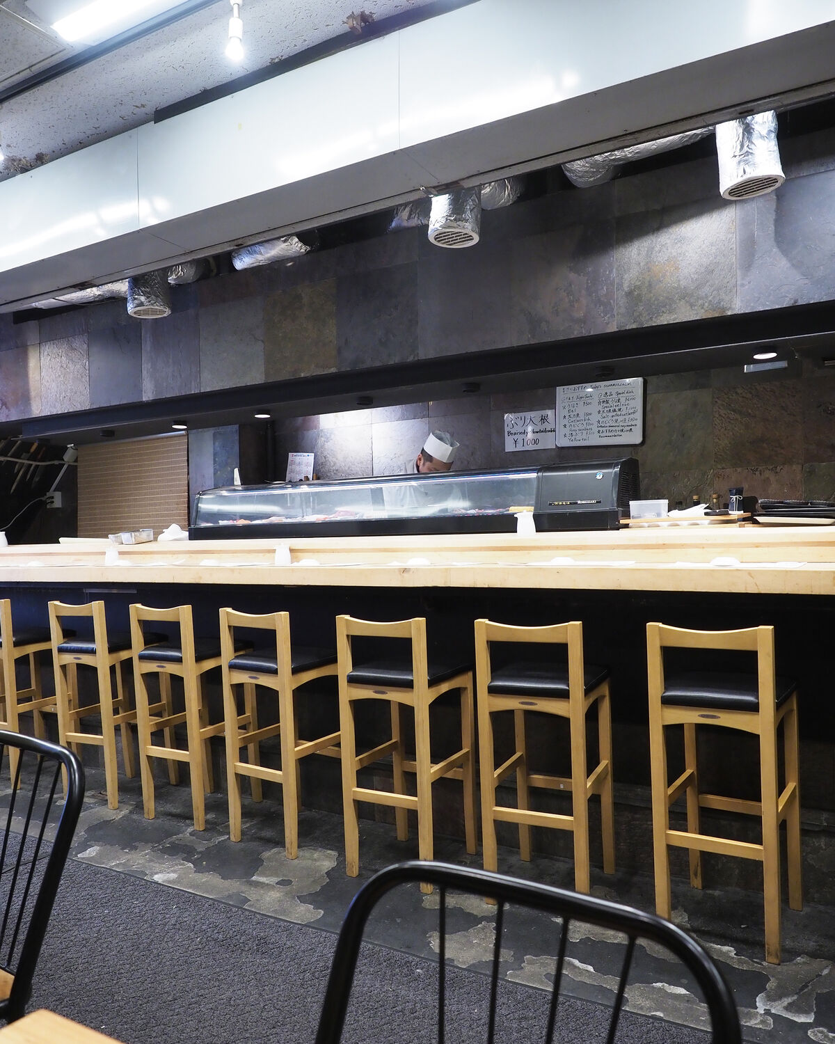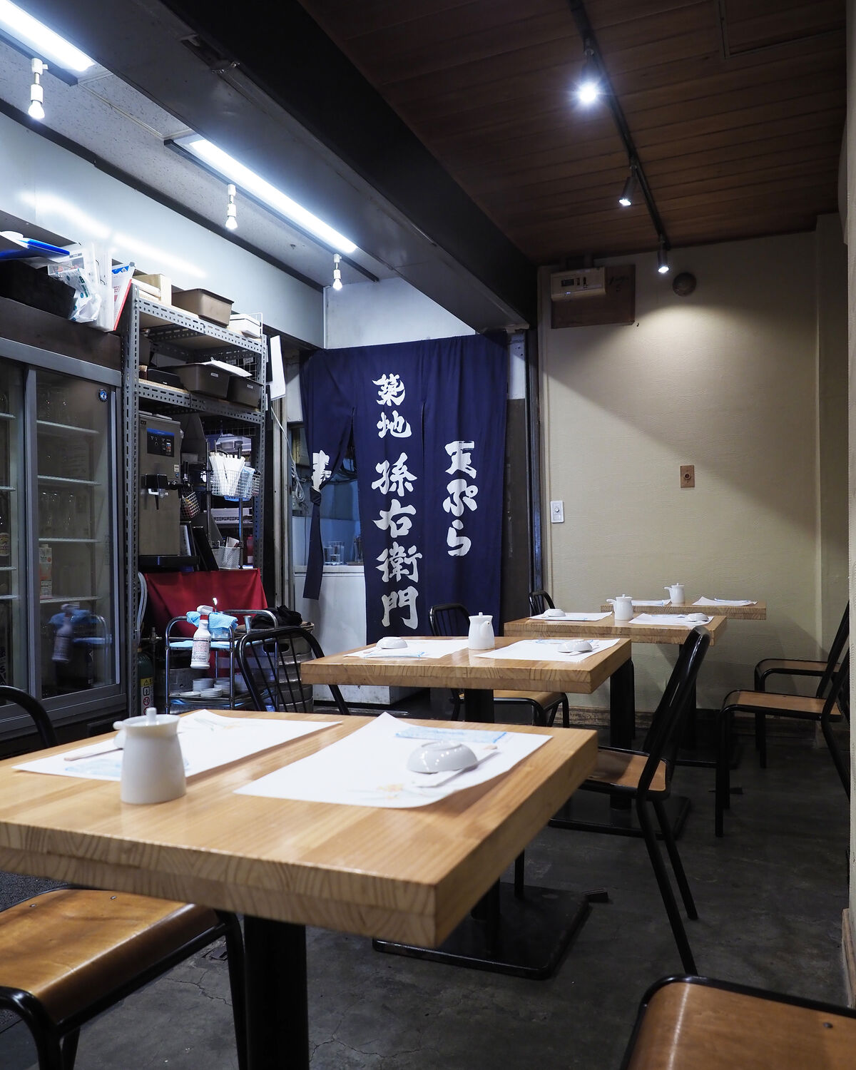 お邪魔した『築地 孫右衛門』はひっそりと営業されていまして、10席ほどのカウンターと2名掛けのテーブルが6卓並ぶ店内には先客はなく…