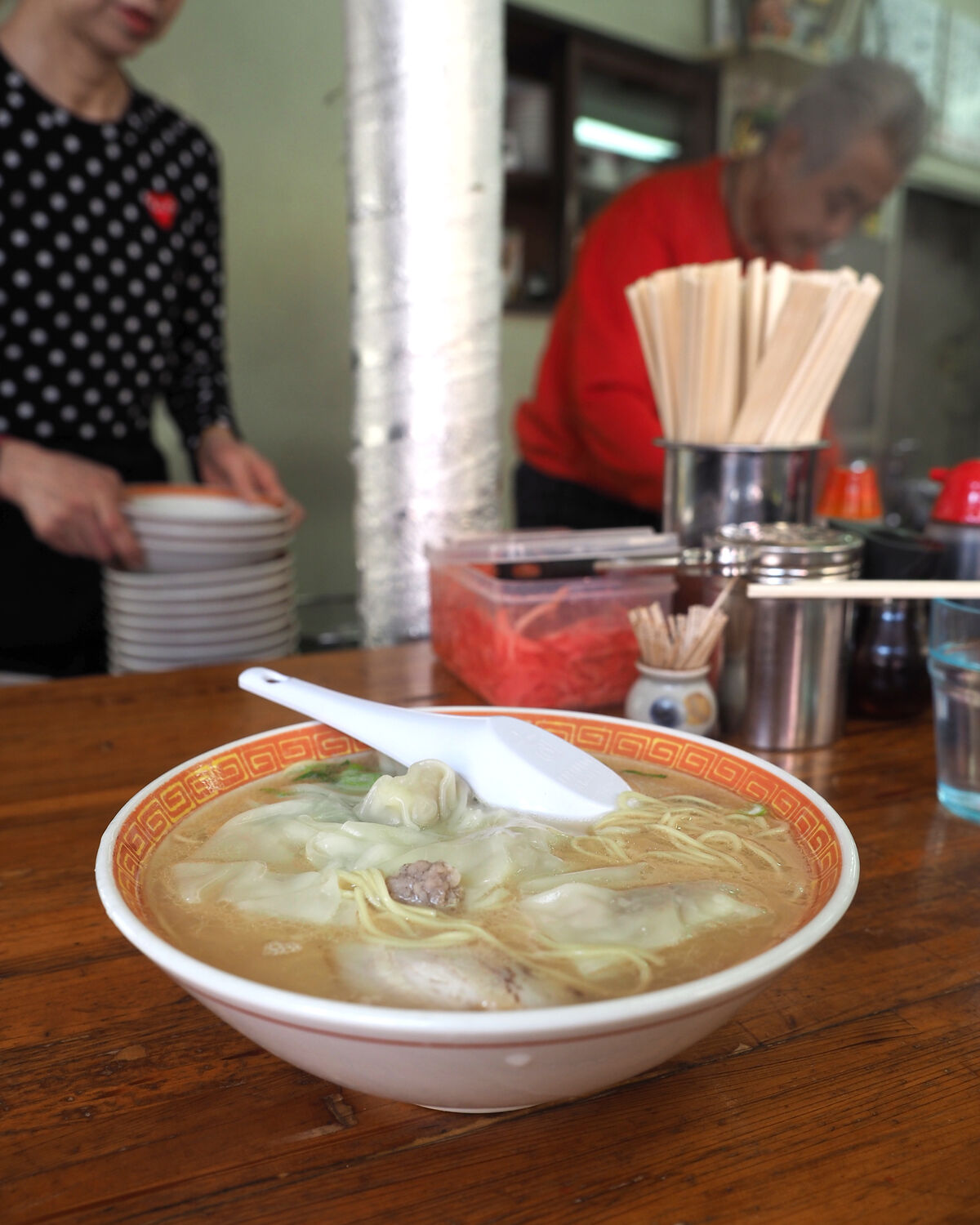 博多のラーメン店では珍しい「ワンタンメン」であります
