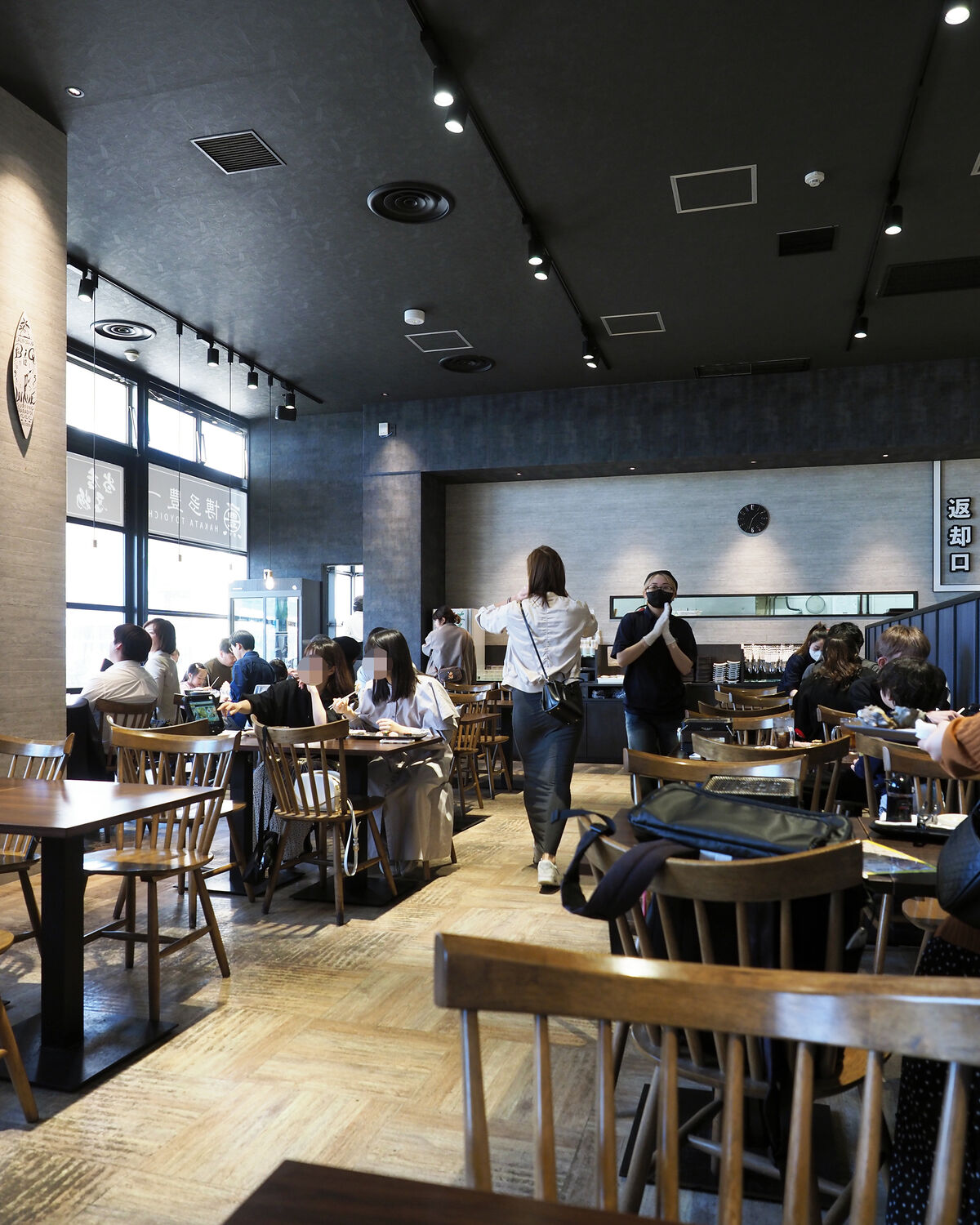 落ち着いた雰囲気の中に80席ほどのテーブル席が並びます