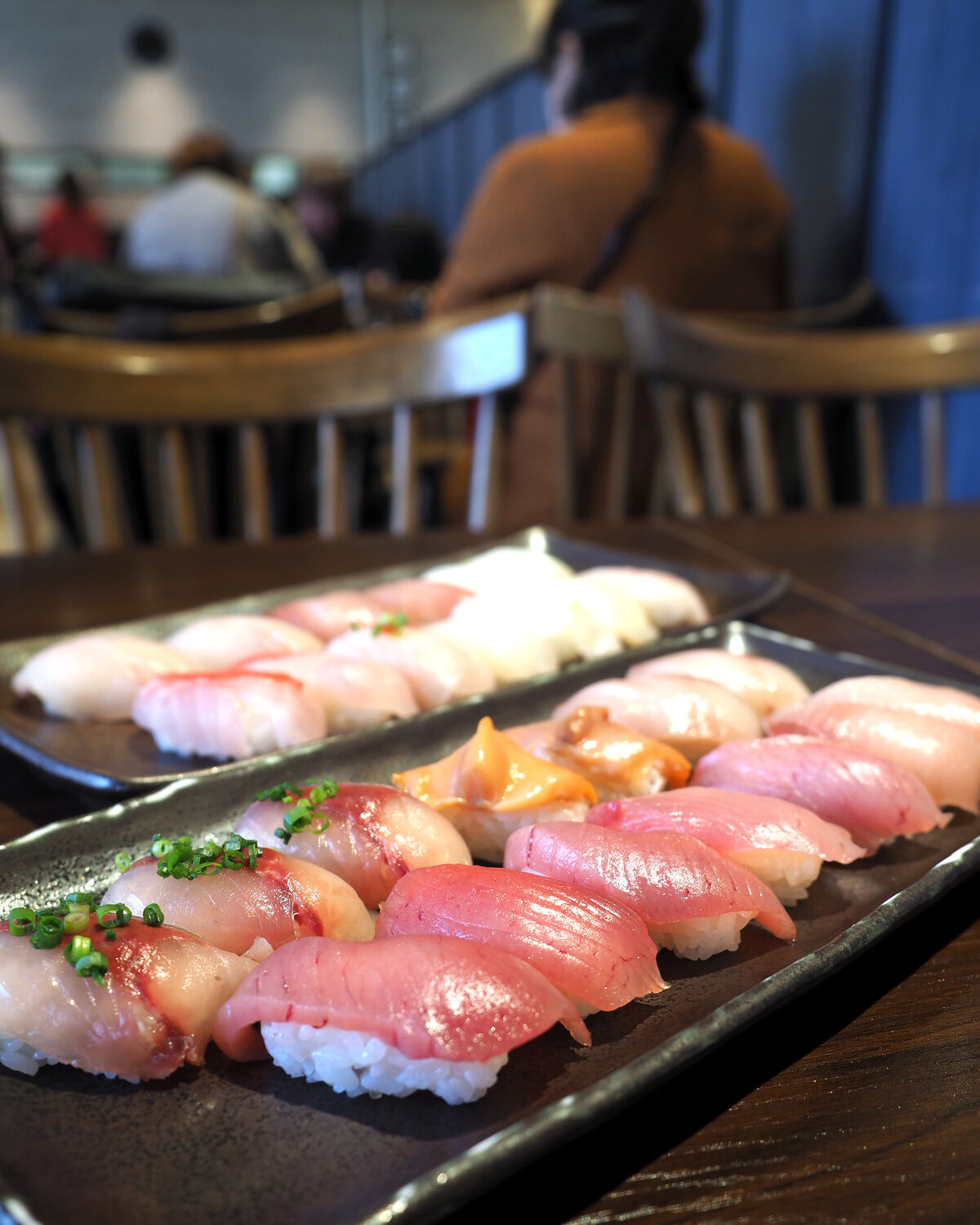 ショーケースに並べられるお寿司は圧巻でありますし、おいしそうなネタの数々に目移りしてついつい取り過ぎてしまいました
