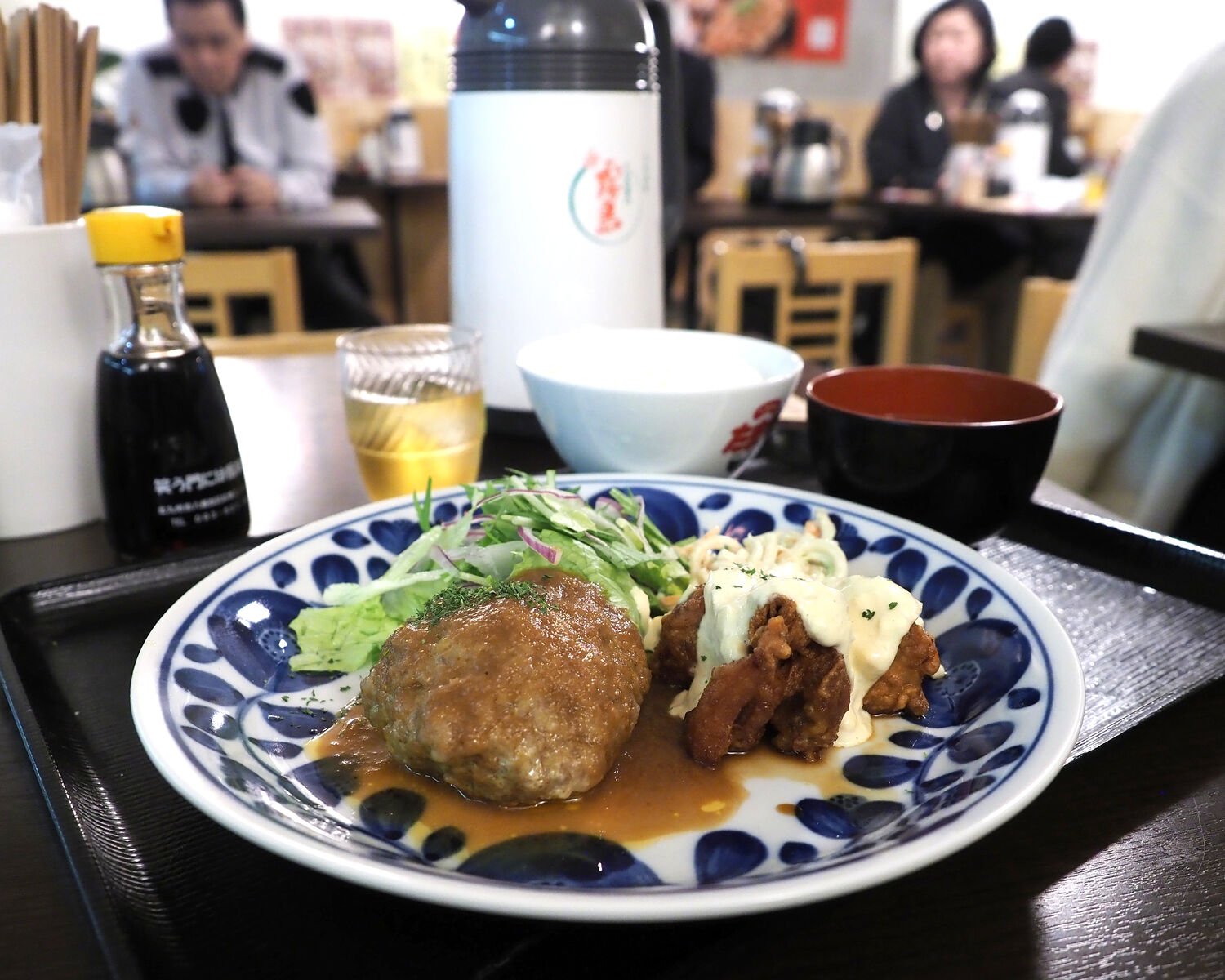 さっそくお邪魔させていただき、好きな2品が選べる「ダブル定食」をハンバーグとチキン南蛮でいただきました