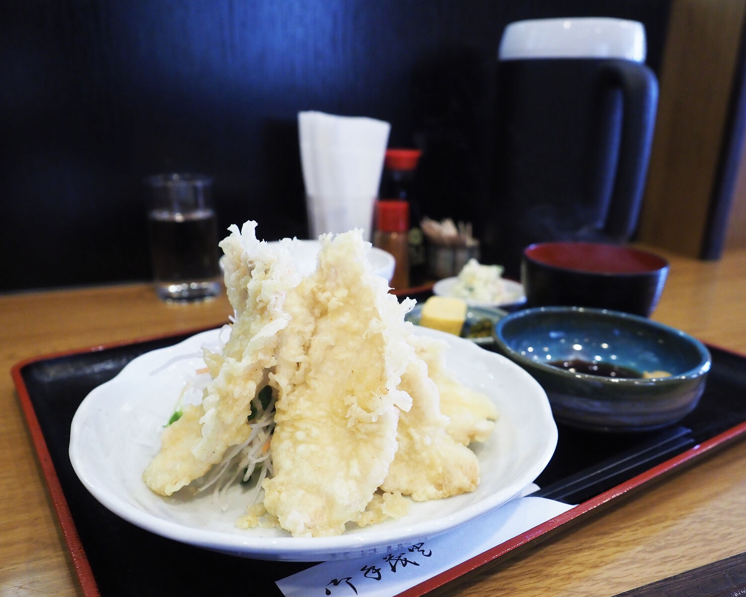 創業期からある「鉄板唐マヨそば」や福岡の食堂では定番の「おすすめ焼サバ定食」「チキン南蛮定食」など魅力的な12品が並ぶメニューに迷いながらも「とり天定食」をいただくことにいたします