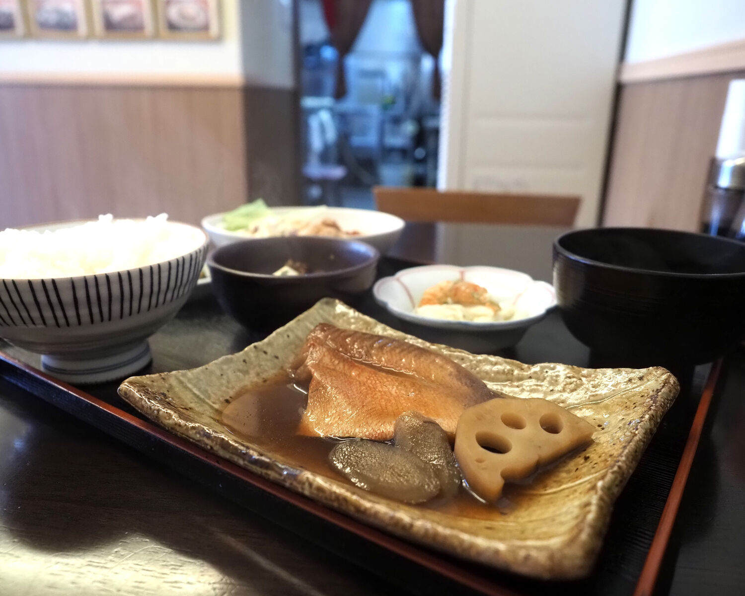 一汁三菜がいただける日替わり定食に惹かれますが、久しぶりにお魚料理がいただきたいと「赤うお煮付け定食」をお願いいたします