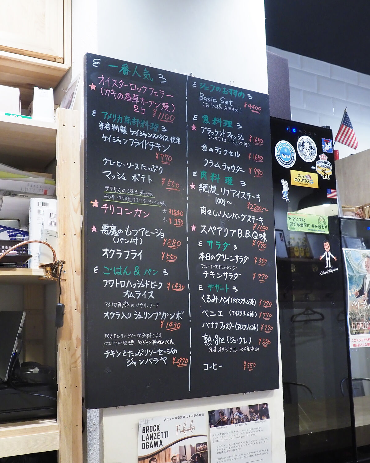 アメリカ南部料理ということで黒板メニューには「ガンボ」や「チリコンカン」「ジャンバラヤ」などが並びますが…