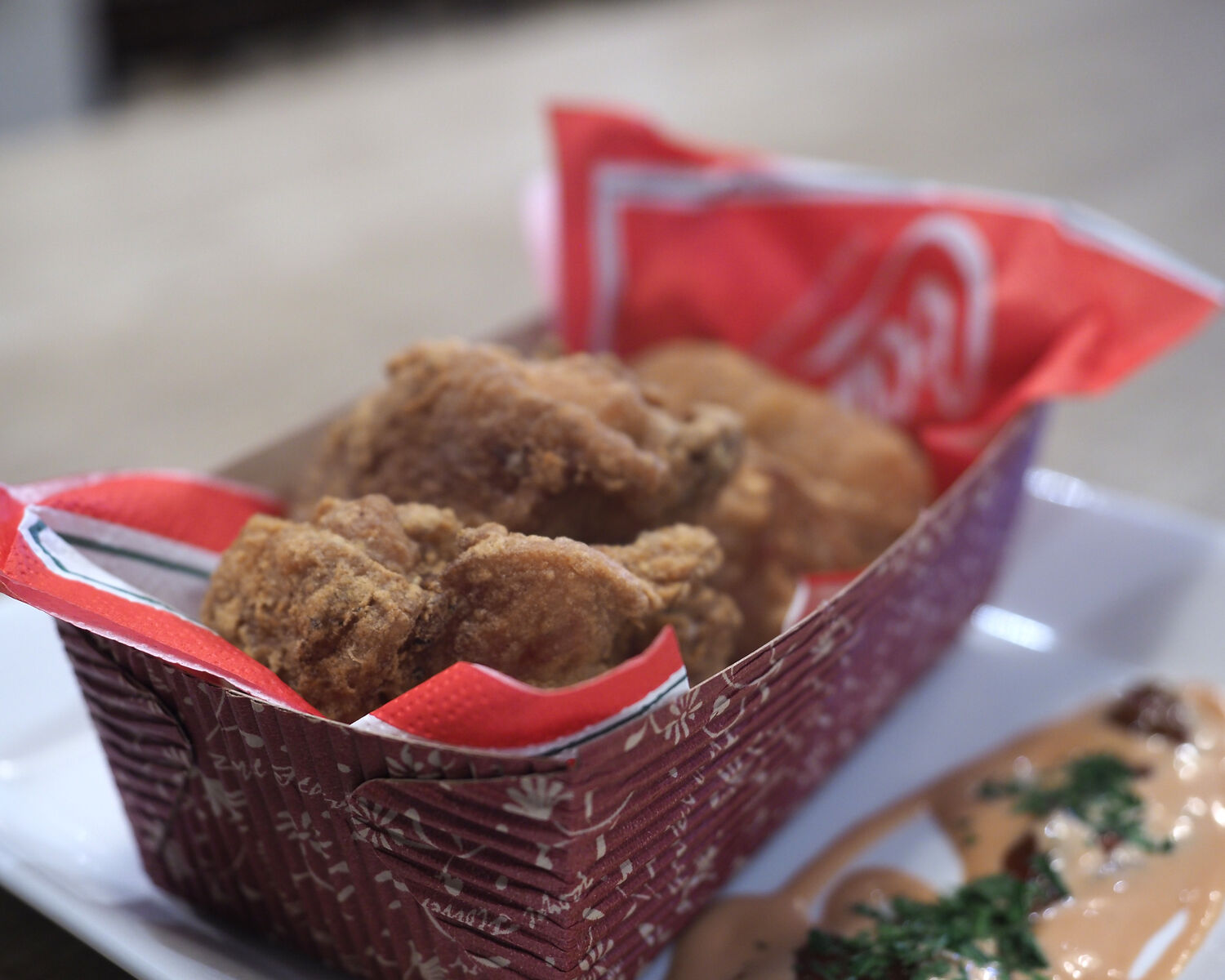 パプリカやクミン、ガーリック、コリアンダーなどいろんなスパイスが使われる“ケイジャンスパイス”で下味が付けられたフライドチキンのスパイシー味わいはクセになるものでありますし、サクッと揚がった歯ざわりも心地好いものでありました