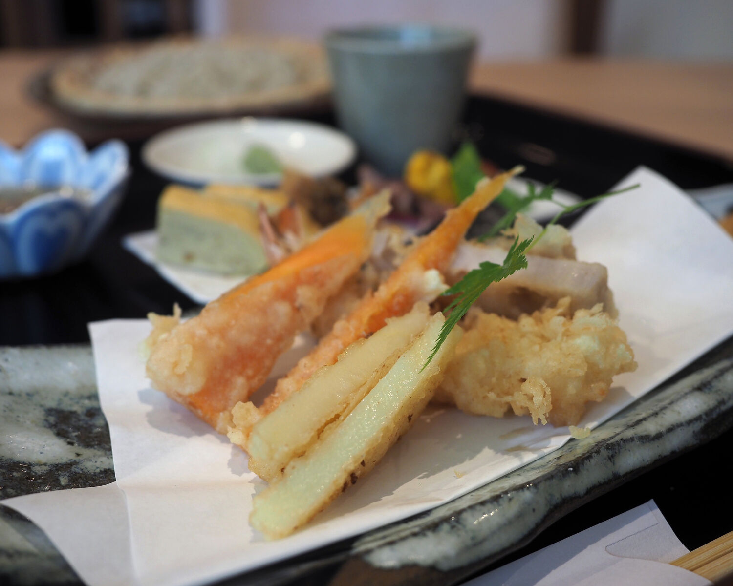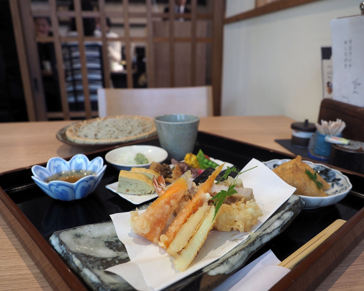 大きな通りに面することがないにもかかわらず2組のお客さまが待たれていましたが、予約をしていたことで、待つことなく平日のお昼に10食限定で提供される「天ぷら膳」をいただきました