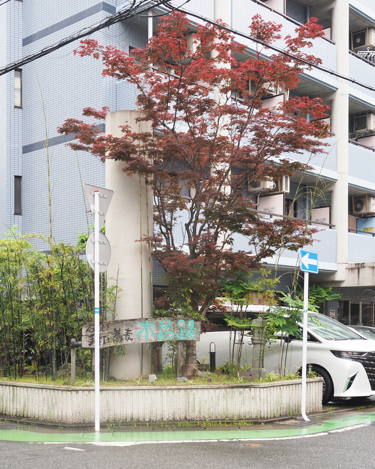 マンションの一階にあるテナントでありながら、シンボルとも思えるような大きな立ち木のほか、緑が溢れる植栽が植えられたファサードに上品さを感じることができますし…