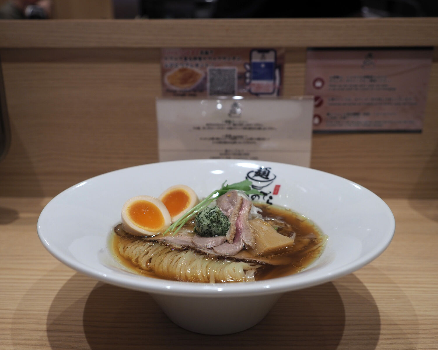 基本となる「醤油ラーメン」と、それに鴨チャーシューや味玉、ハーブバターがトッピングされる「特製醤油ラーメン」、さらにトリュフが香るワンタンが加わる「至高~supreme~」と3種のラーメンのほか、「つけ麺」や「まぜ麺」、麺と一緒にとある「焼鴨と燻豚チャーシュー丼」と用意されていまして…