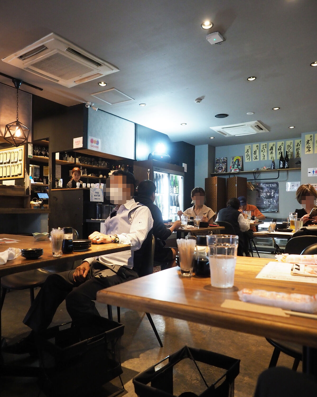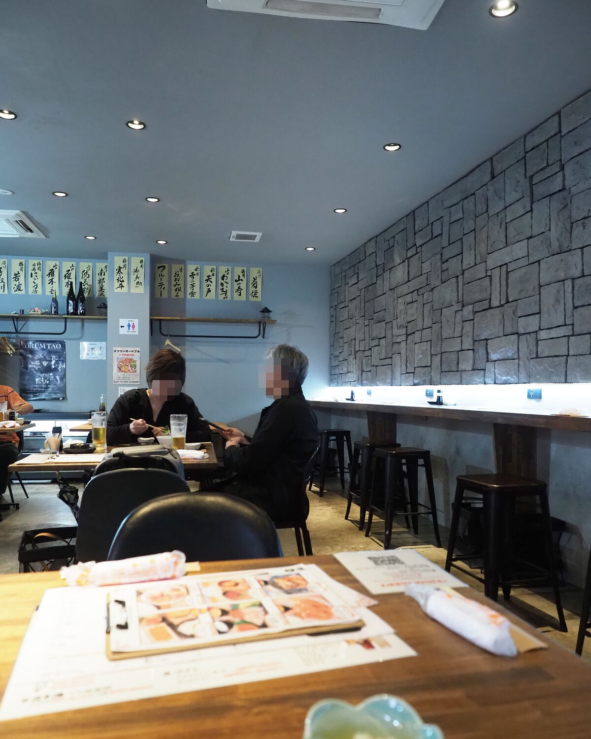 6卓18席とカウンター13席が並ぶ店内は市場内食堂とは思えないスタイリッシュな設えであります