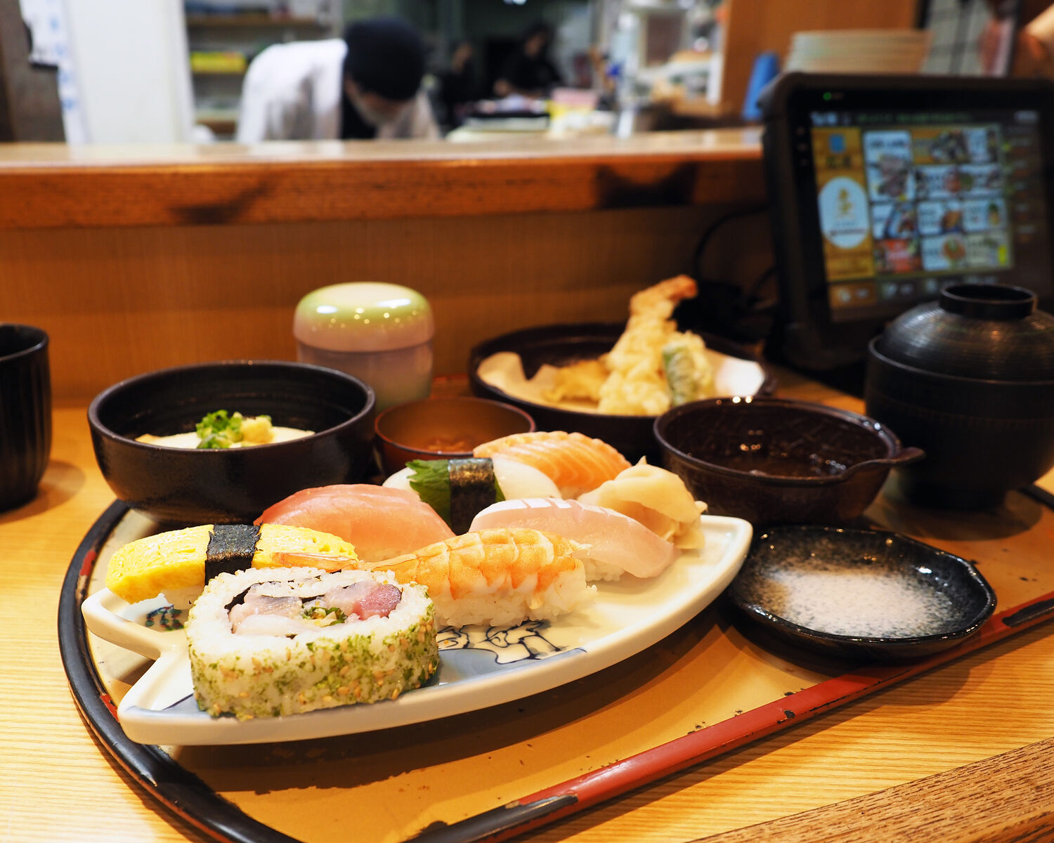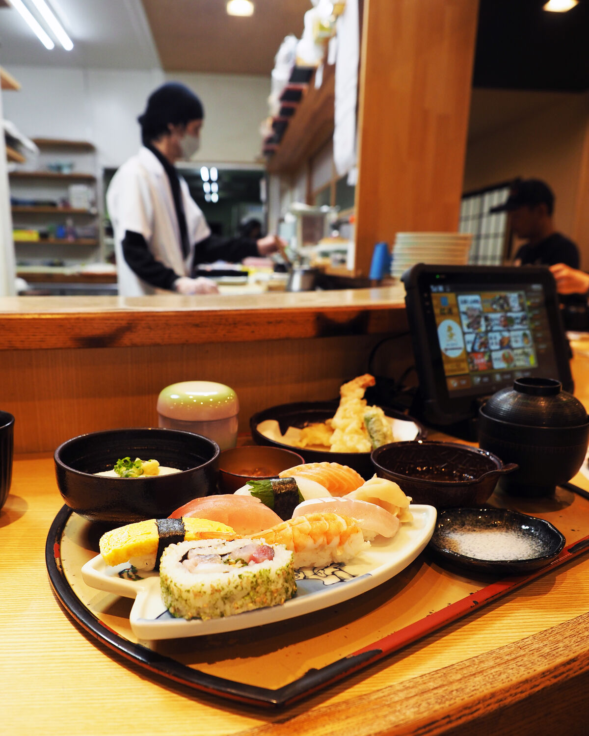 和定食に惹かれるところではありますが、目の前に立つ板前さんが寿司を握っていましたので、寿司と天ぷらがいただける寿司定食をお願いいたします