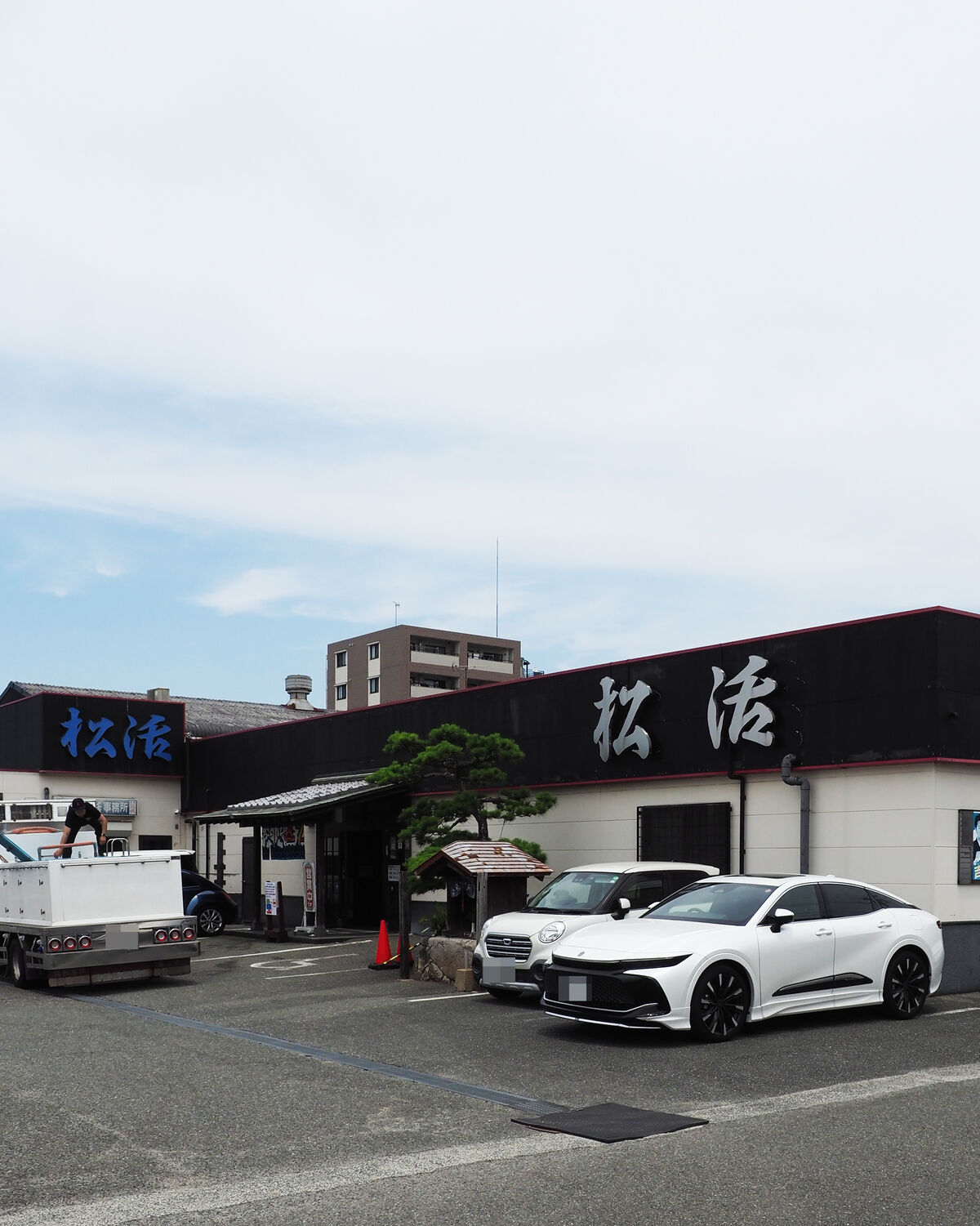通りからひと区画入りますが、お店の前にある30台ほどの駐車場は埋まっていますし、活魚の配送であろう車も停まっていまして…