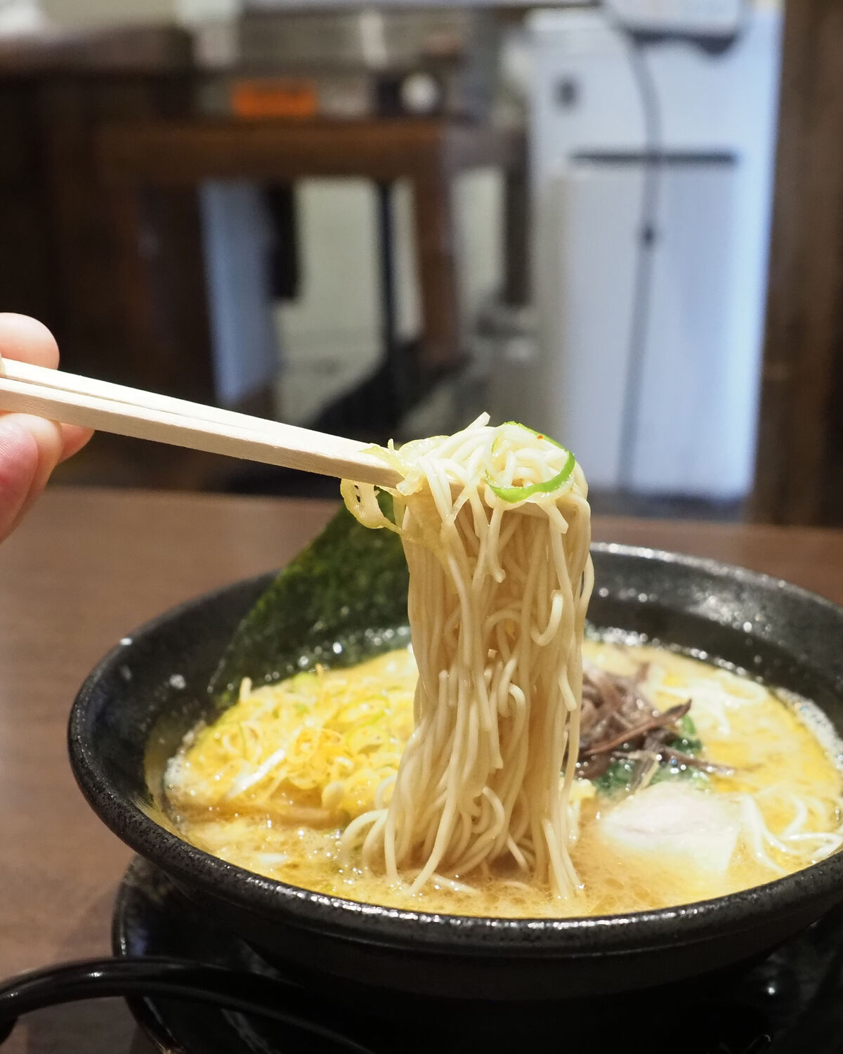 豚骨醤油で有名な“家系”にある中太の縮れ麺だけでなく、長浜ラーメンでお馴染みの細麺を選ぶこともできるとのことでした