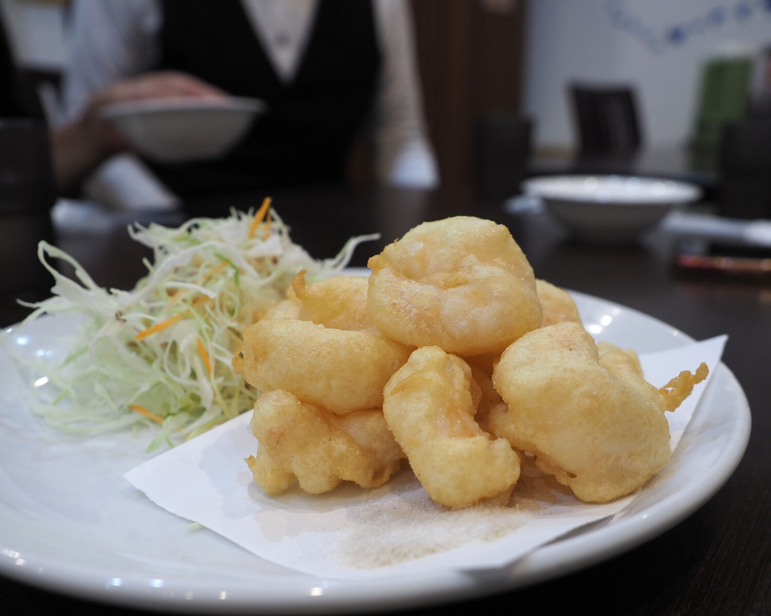 海老の天ぷらを提供する中華料理店は多くありませんが、サクッとした衣とプリッとした海老の歯ざわりがお気に入りであることから、それを見つけるといつも頼んでしまう一品であります