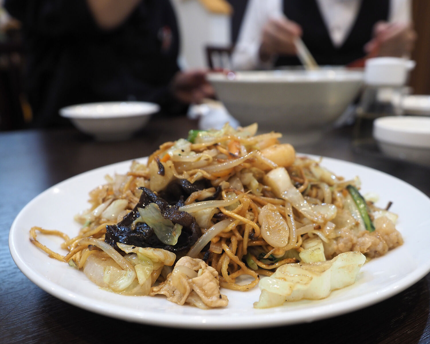 カリッと焼かれた中太麺が特徴的でありますし、豚肉とキャベツ、もやし、キクラゲなど言った具材の旨みも出ていて…